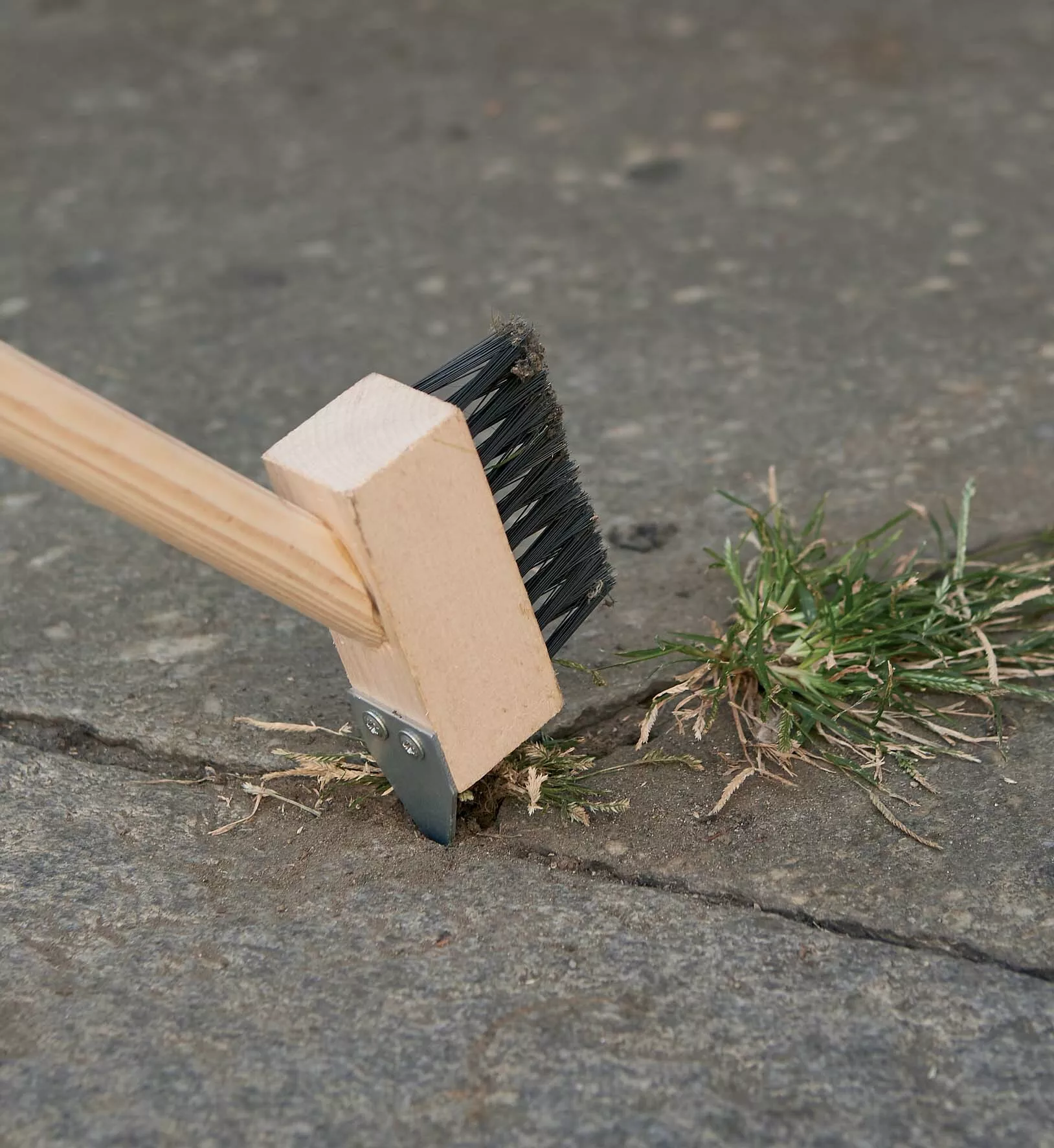 - Nástroj na odstraňování plevelů a trávy ze spár ve venkovní zámkové dlažbě.