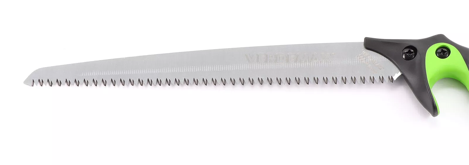- Profesionální ruční pilky s pevnou čepelí vyrobené z kvalitní pochromované oceli, což zvyšuje odolnost vůči korozi. Třístranně naostřené lichoběžníkové zuby umožňují velice rychlé a efektivní řezání dřevěných vláken. Speciální Verdemax rukojeť s ochranou prstů, ochranné ABS pouzdro.