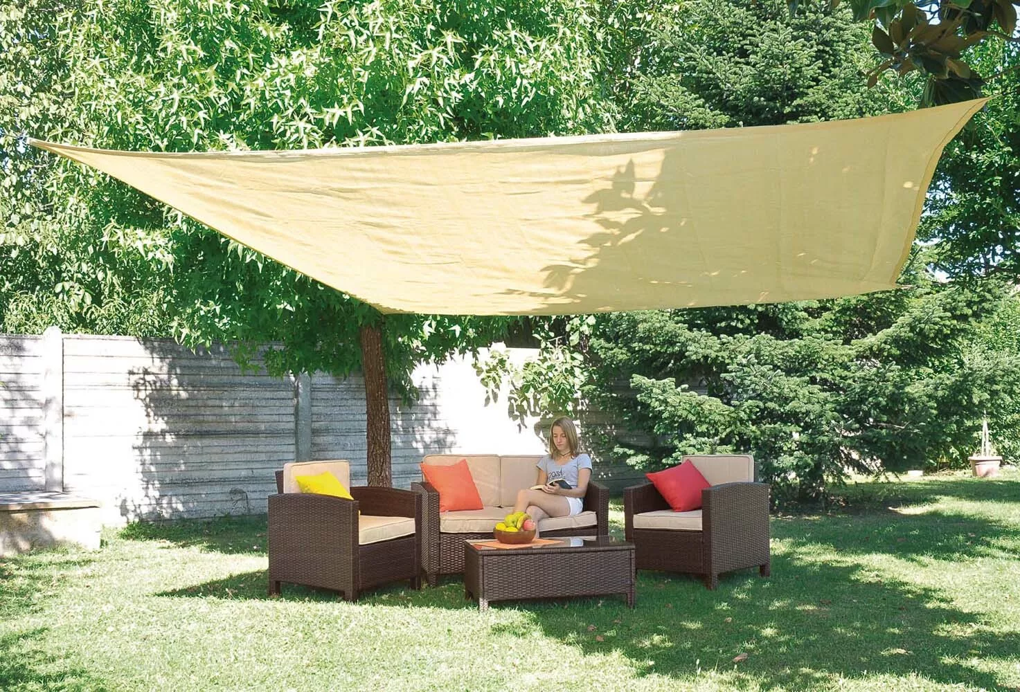 - Stínící plachty jsou ideálně zhotovené pro vytvoření zastíněných ploch na Vaší zahradě. Zesílené prošívání, ocelové kroužky v každém rohu, dodáváno kompletně s upevňovacími lany