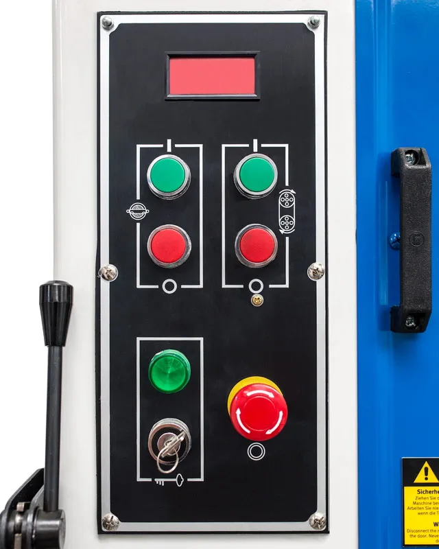 - Vestavěnýa snadno přístupný chladící systém Hydraulikou řízený pád ramene do řezu Silný třífázový motor v litinovém pouzdře Úhlování pomocí ramene -45° až 60° Šneková převodovka v olejové lázni Možnost vertikálního i horizontálního řezání Vypnutí pily po doříznutí materiálu pomocí koncového spínače Silně dimenzované rameno pily odolné proti kroucení 3 rychlosti pásu nastavitelné pomocí řemenic Snadno ovladatelný rychloupínací svěrák Jednoduše mobilní díky podstavci s manipulačními kolečkySoučásti dodávky pásové pily PPK-115UHC/400