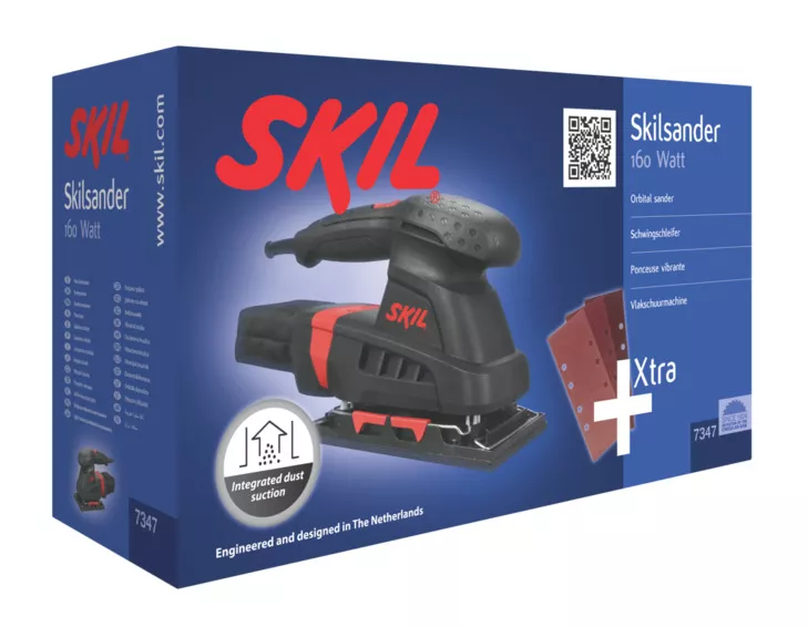 - Vibrační bruska SKIL 7347 je vybavena výkonným 160 W motorem a díky své konstrukci snižuje námahu při broušení rozsáhlých ploch, jako jsou dveře či stoly.