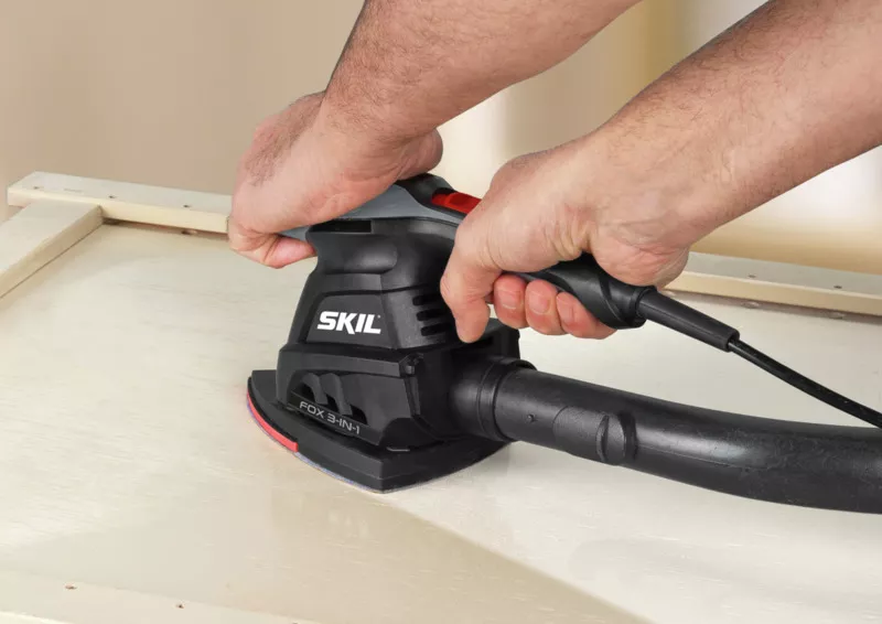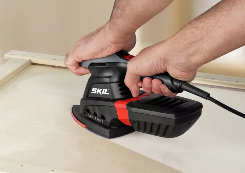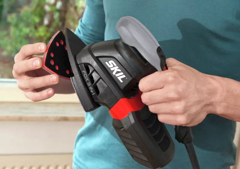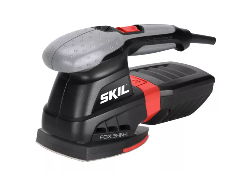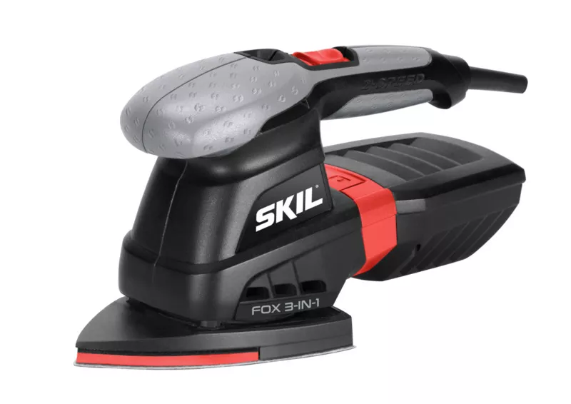 - Nástroj „Fox“ tři v jednom se dodává v robustní tašce spolu se dvěma podložkami a deseti listy brusného papíru.Multifunkční bruska Skil 7220 „Fox“ tři v jednom spojuje motor o vysokém výkonu 250 W s vibračním či excentrickým pohybem v závislosti na použité podložce.