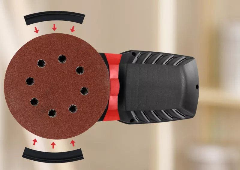 - Při použití kulaté podložky provádí multifunkční bruska excentrický pohyb, takže je bruska ideální pro rychlé odebírání materiálu na velké ploše a pro broušení zakřivených ploch.