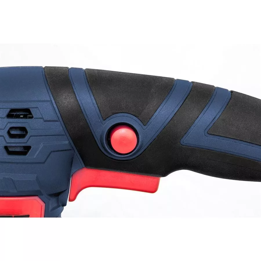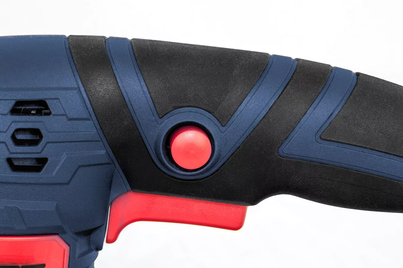 - Konstrukce: ergonomicky tvarované rukojeti s tlumicími vložkami a indikátorem napětí (-> LED dioda), prachový box