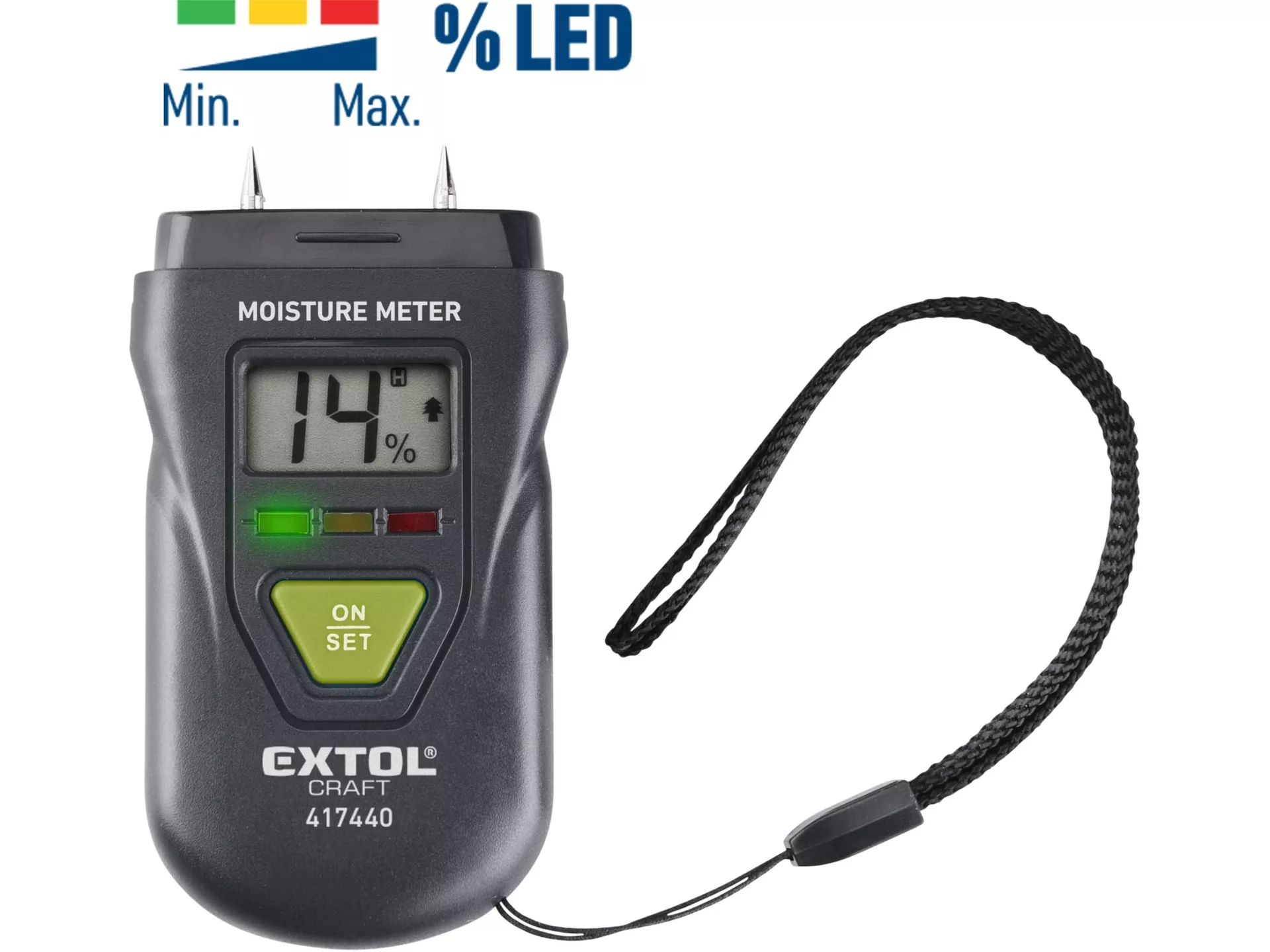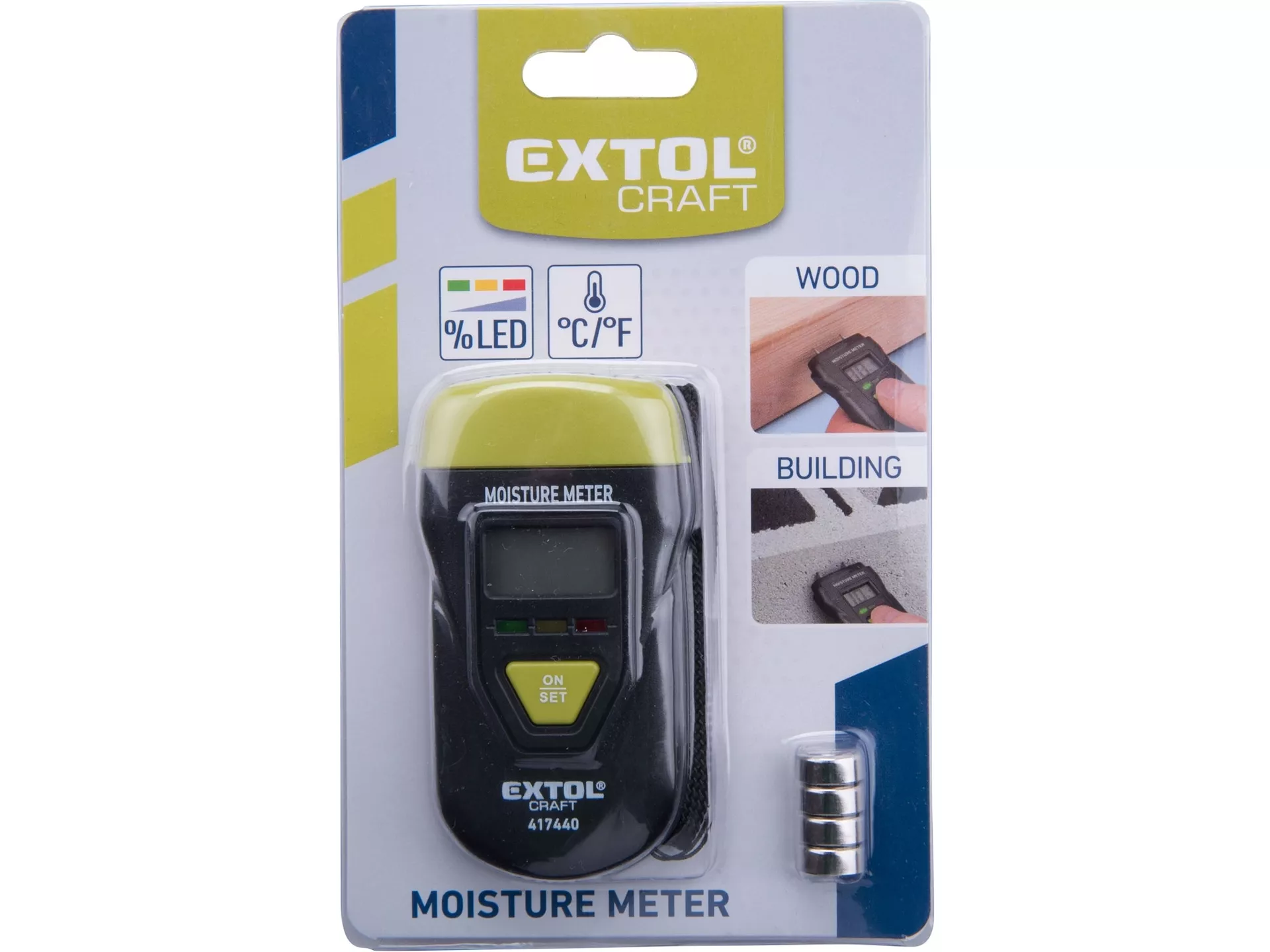 Vlhkoměr pro měření vlhkosti dřeva, omítky a podobných materiálů EXTOL CRAFT 417440
