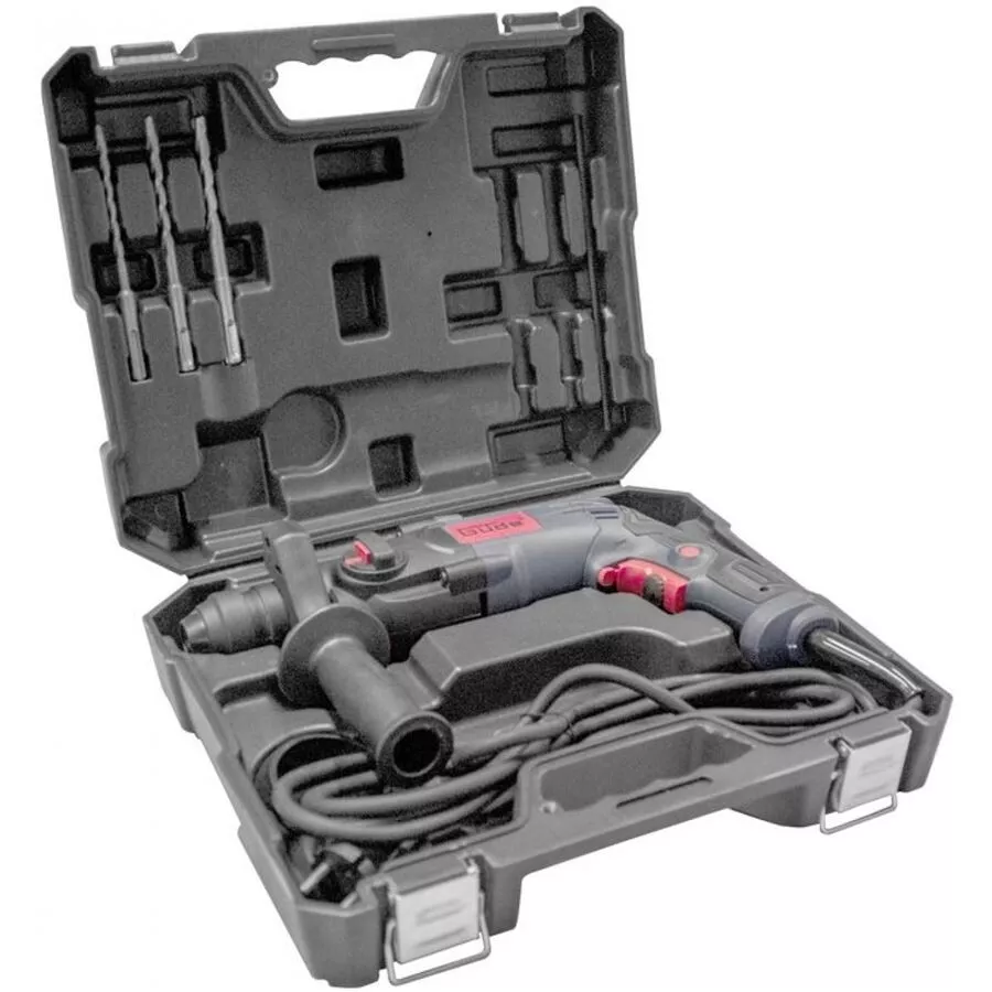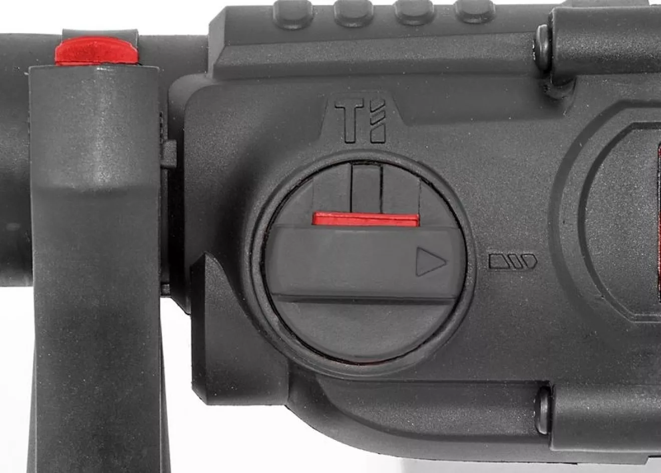 - Konstrukce: rychloupínací sklíčidlo SDS-plus, hloubkový doraz, protiprachová krytka, ergonomicky tvarovaná rukojeť s tlumicí vložkou a indikátorem napětí (-> LED dioda), otočné boční držadlo