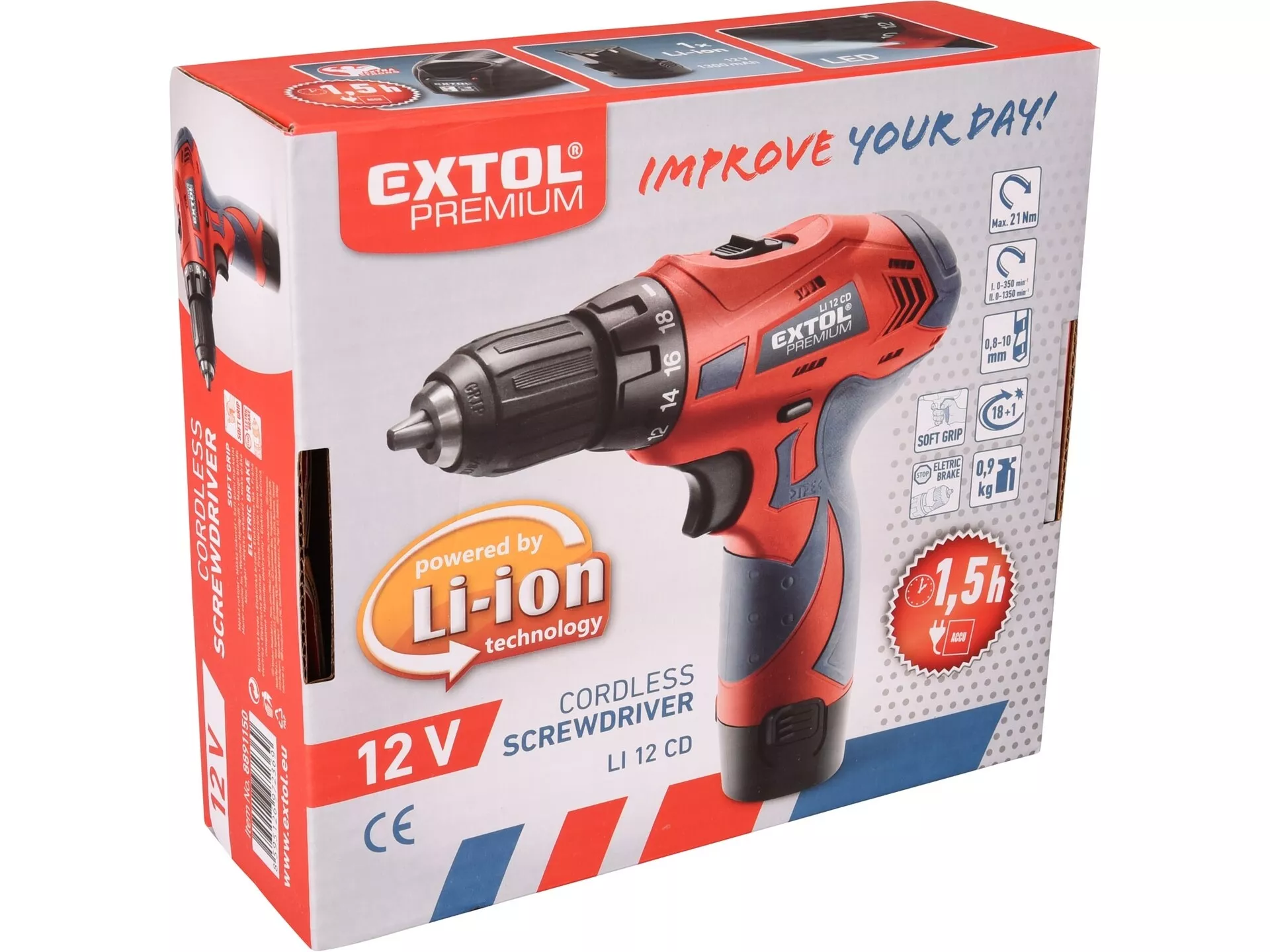 Vrtací šroubovák aku, 12v li-ion, 1500mah EXTOL PREMIUM 8891150
