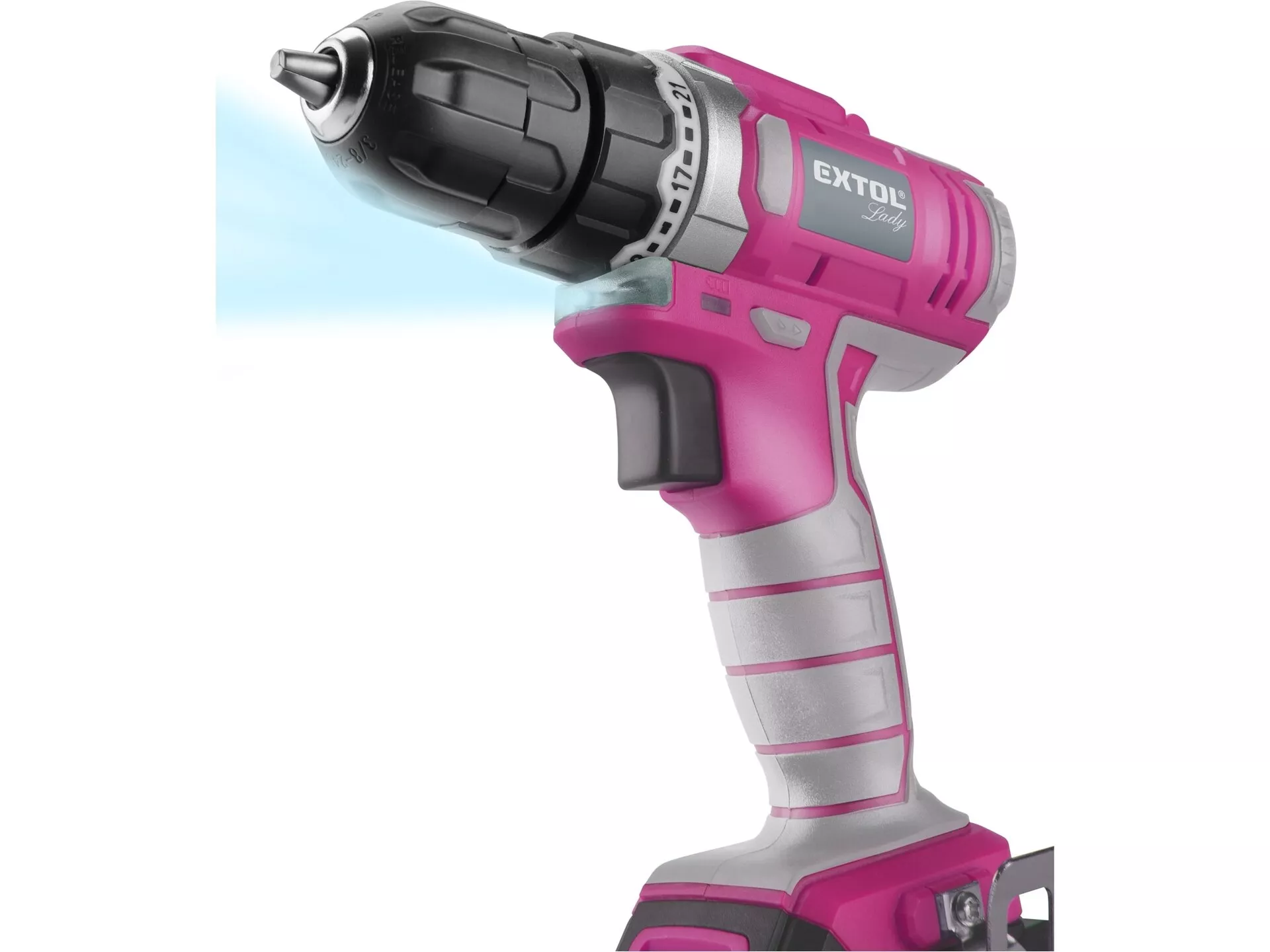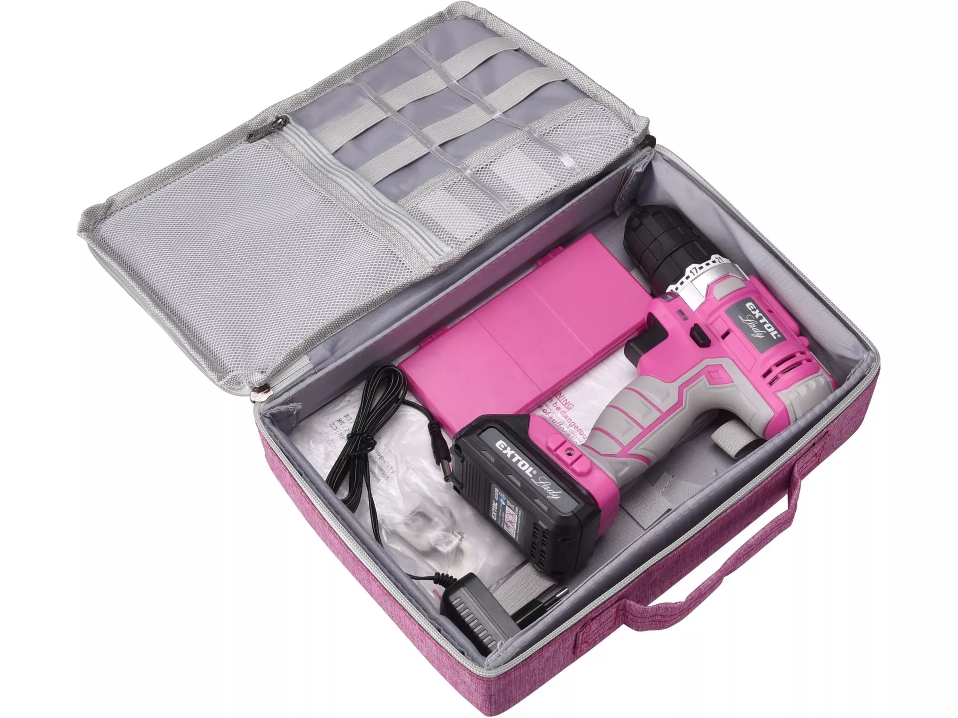 Vrtací šroubovák aku, růžový, 12v li-ion, 1300mah, v tašce EXTOL LADY 402401