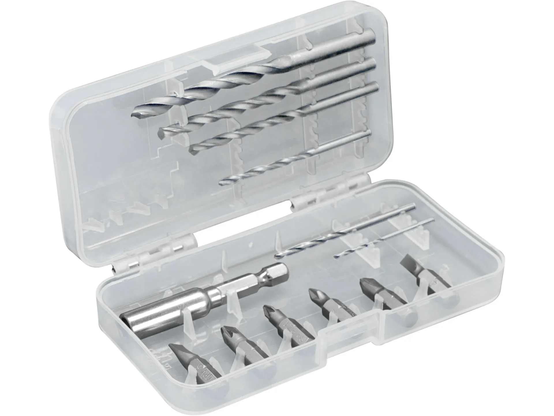 • Příslušenství: držák na bity, vrtáky 1,5-2-2,5-3-3,5-4-5-6mm, bity (-) 5mm, PH 1-2, HEX 5, TORX 20, sada 13ks