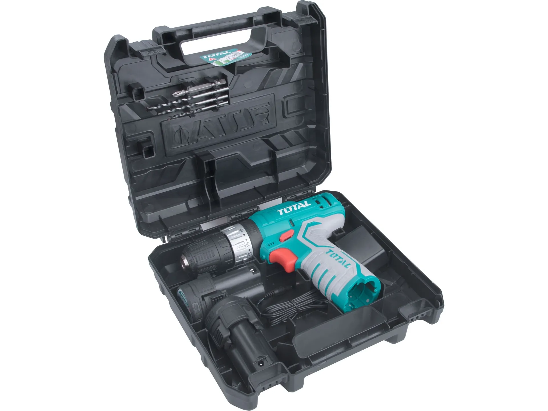 - Velmi kvalitní vrtací šroubovák s příklepem je určen pro hobby použití jak doma, v dílně nebo na chatě. Mile Vás překvapí jeho robustní vzhled a precizní zpracování. Ke standardnímu vybavení patří levý a pravý chod, integrované pracovní světlo, indikátor nabití baterie, 2 rychlosti vrtání, 18 stupňů utahovacího momentu a planetární převodovka z tvrzené oceli zaručující dlouhou životnost. K nadstandardu u tohoto šroubováku patří příklep s 22500 příklepů za minutu. Vrtací šroubovák je dodáván se 2 kusy baterie, nabíječkou a je zabalen v malém a praktickém kurfu pro snadný přenos. V kufru najdete také 3 vrtáky do betonu a 1 kus CrV oboustranného hrotu. Je tedy připraven k okamžitému použití.Společnost TOTAL působí na trhu nářadí již více než 25let. Postupem času se vypracovala na jednoho z největších výrobců nářadí. Její výrobky se úspěšně prodávají po celém světě. TOTAL je značka zaměřená na kvalitní, cenově dostupné nástroje s odkazem na funkci, použitelnost a vzhled. Další důležité aspekty značky jsou účinnost, výkon a udržovatelnost. V současné době produkuje společnost dvě řady výrobků TOTAL, kde o stupínek výše stojí řada Industrial.