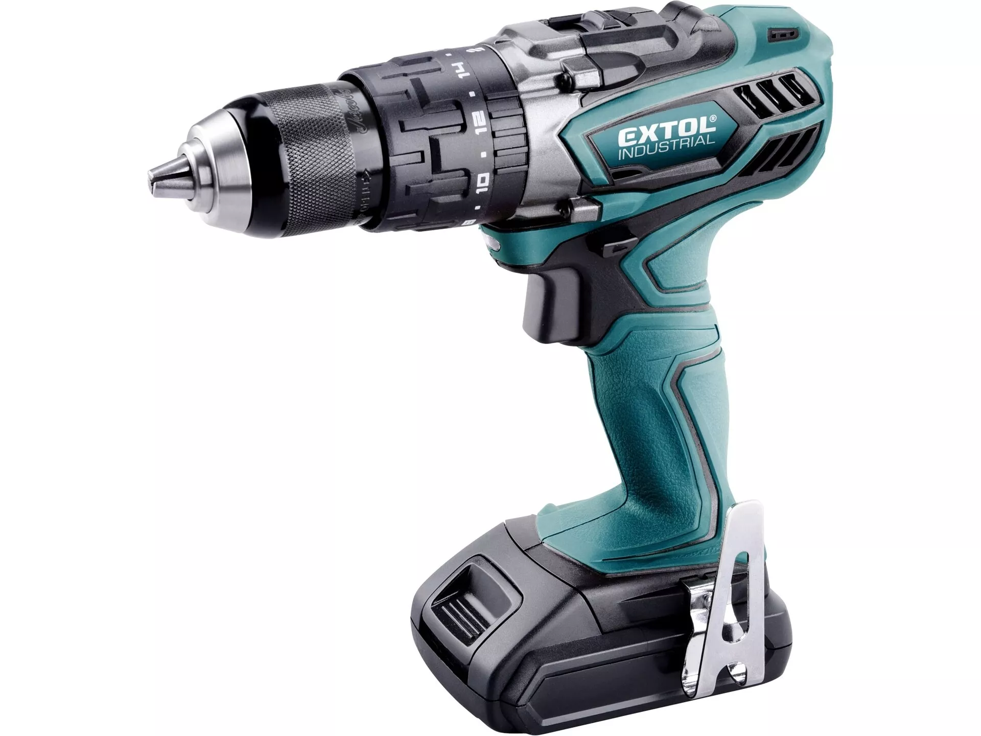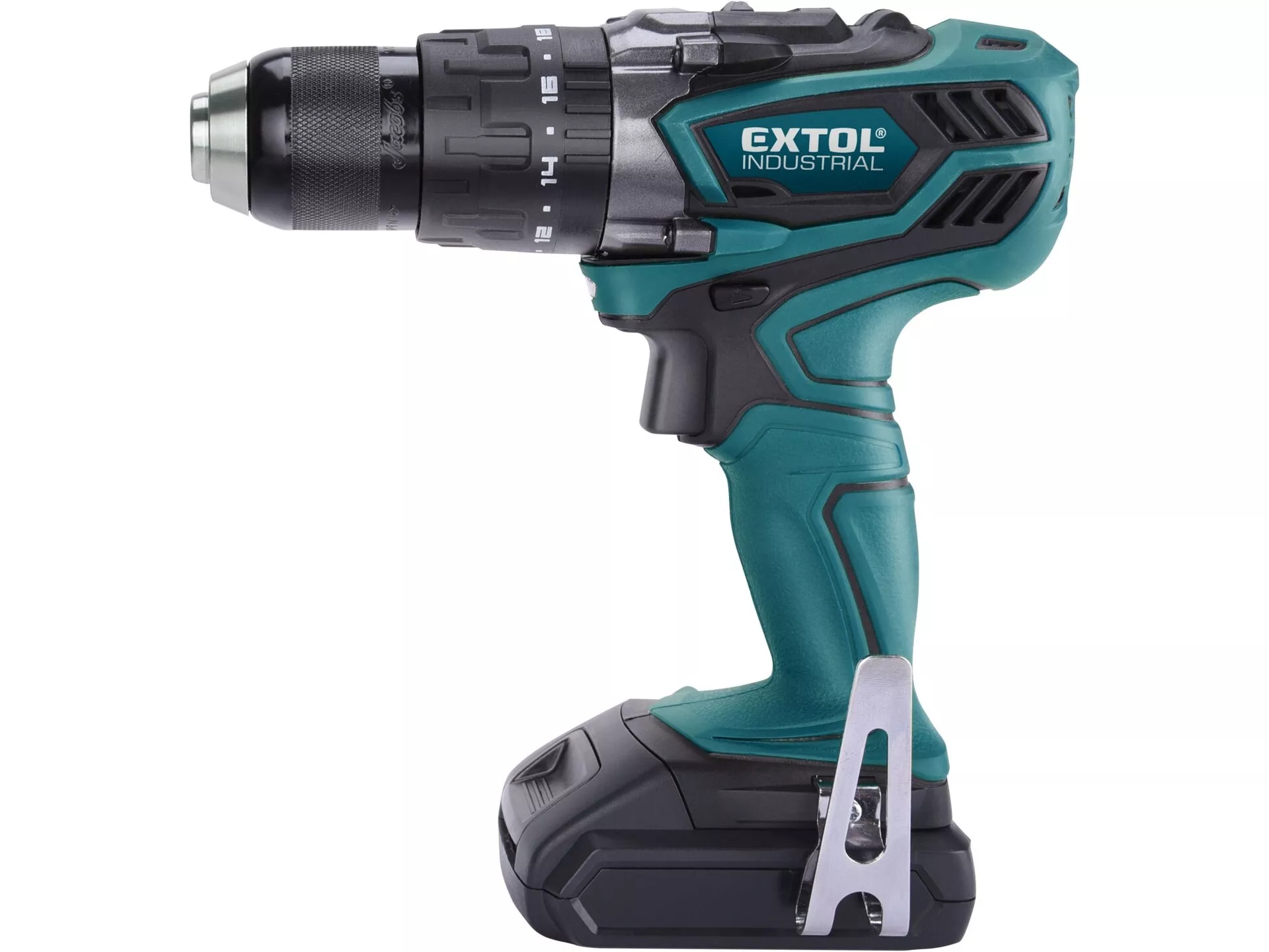 Vrtací šroubovák aku s příklepem, 18v li-ion, 4 pólový motor, 2000mah EXTOL INDUSTRIAL 8791110