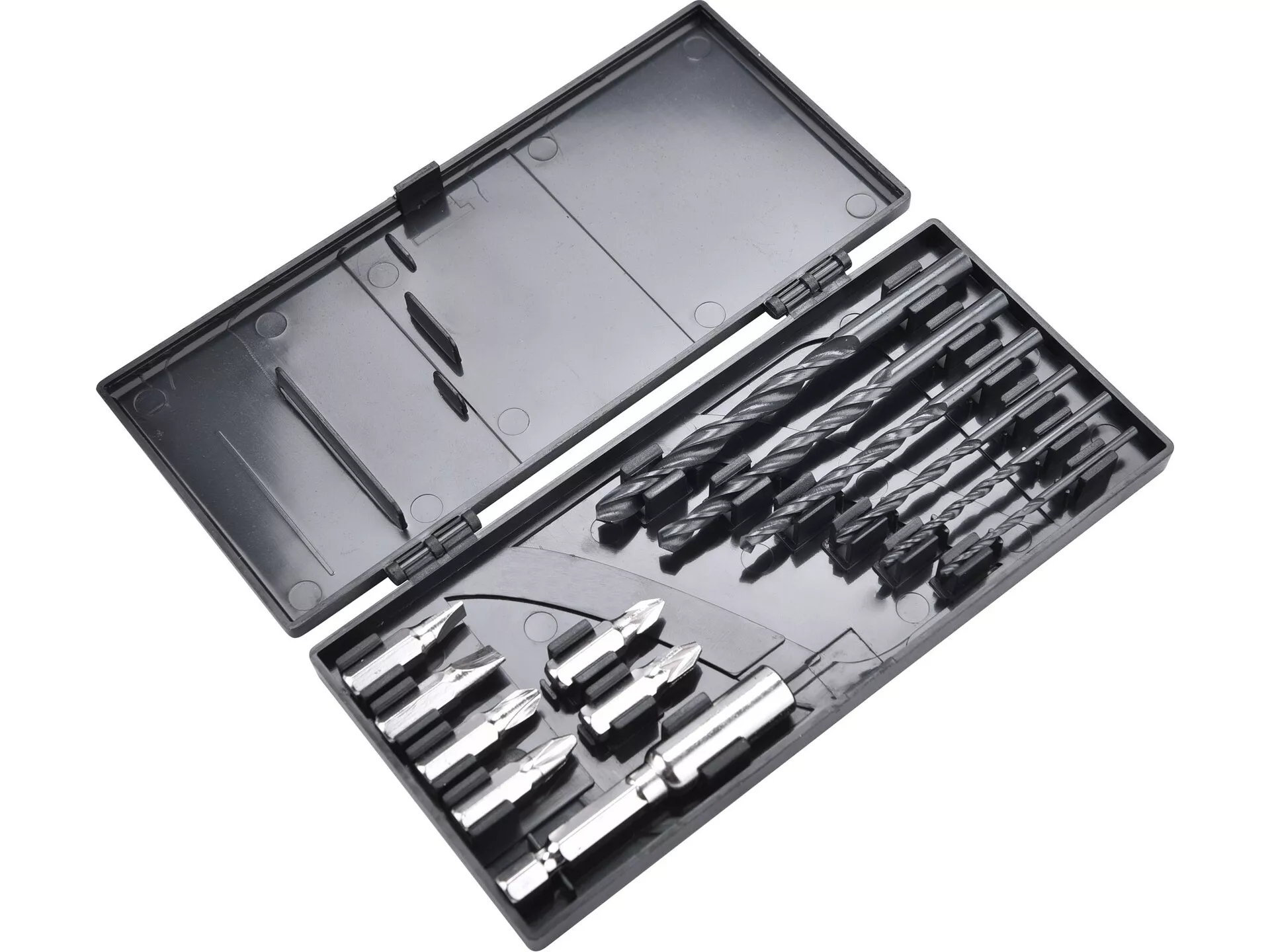 - Příslušenství: pouzdro s 6vrtáky, 6hroty a držákem na bity