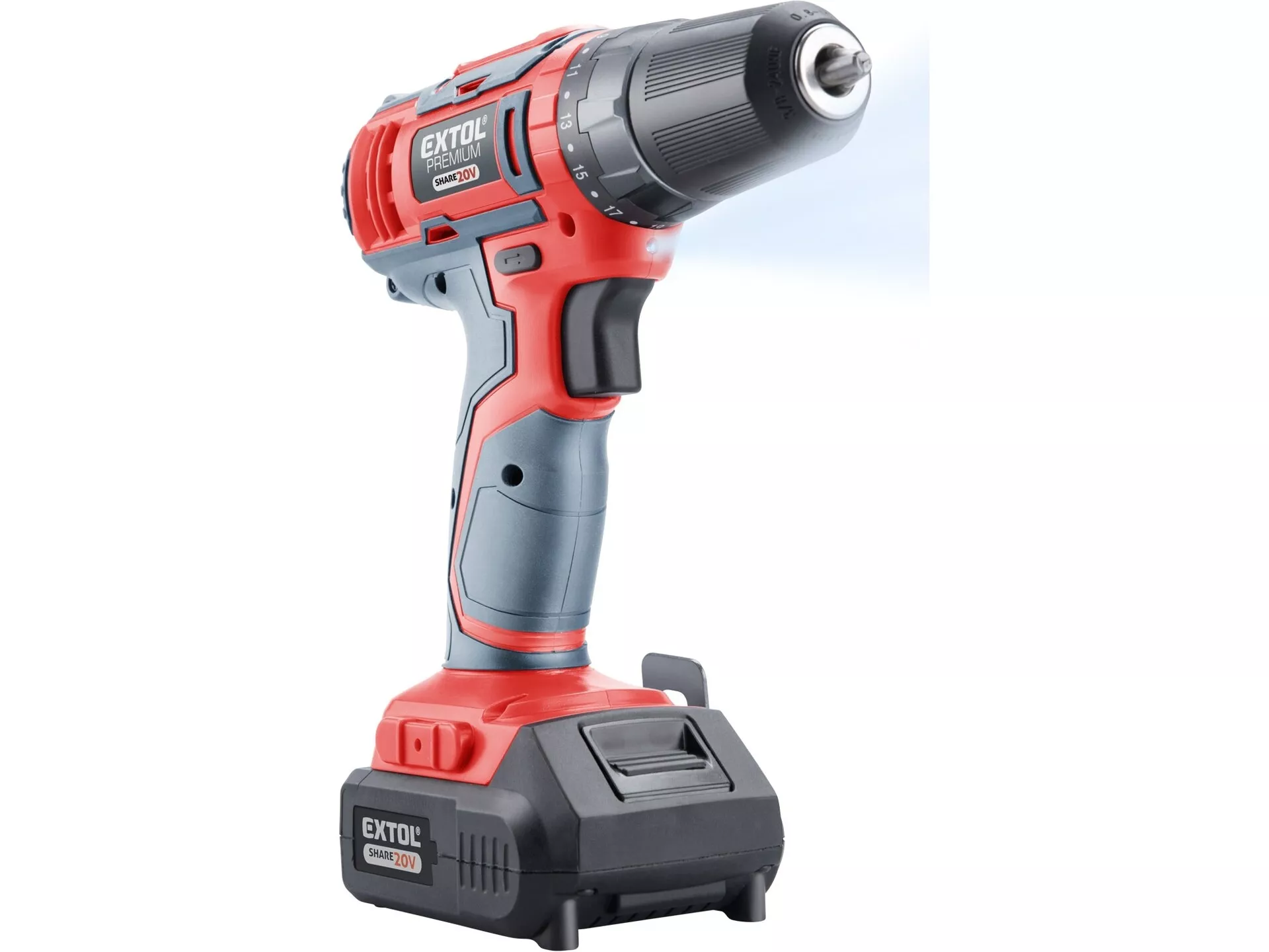 Vrtací šroubovák aku s příklepem share20v, 20v li-ion (2×), 2000mah EXTOL PREMIUM 8891804