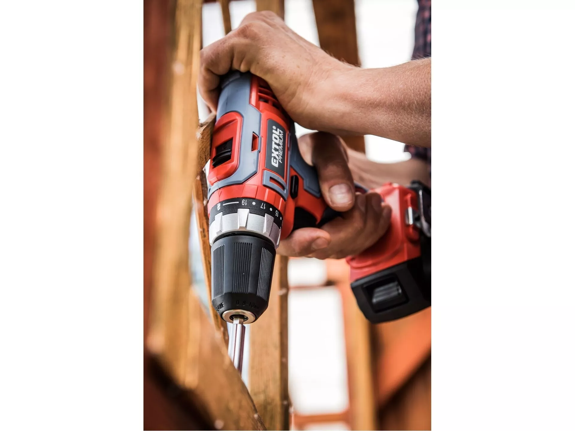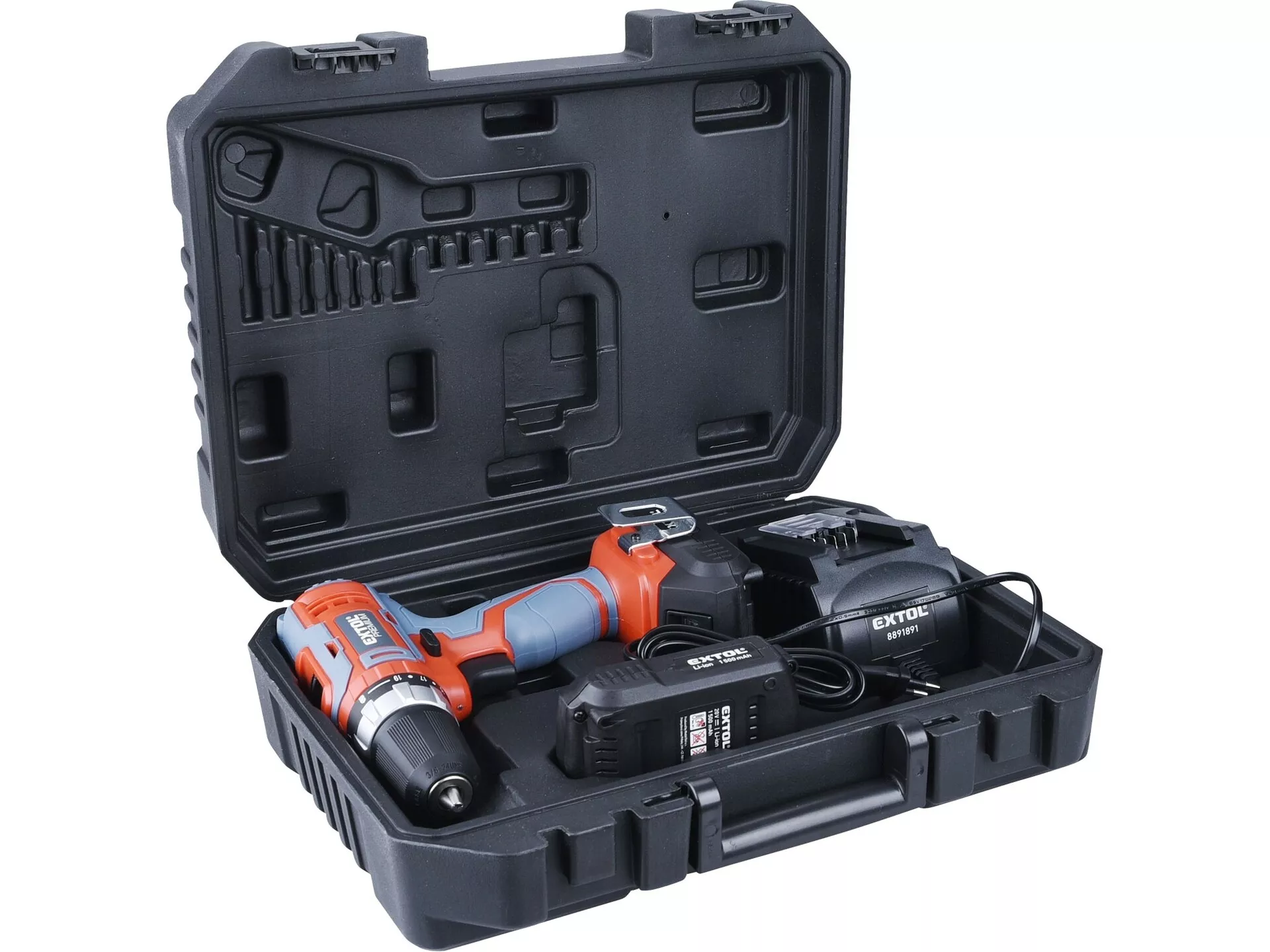 - Lehký a výkonný dvourychlostní vrtací aku šroubovák s vysokým utahovacím momentem pro vrtání a šroubování do kovu a dřeva. Díky aretaci sklíčidla můžete snadno měnit vrtáky jednou rukou. Akumulátor lze použít ve všech 20V aku strojích z řady Extol Premium 88918xx. Díky Li-ion technologii je možné akumulátory kdykoliv dobíjet, aniž by se tím snižovala jejich kapacita. Li-ion akumulátor ztrácí energii vlivem samovybíjení velmi pomalu a vydrží dlouho nabitý a připravený k použití.