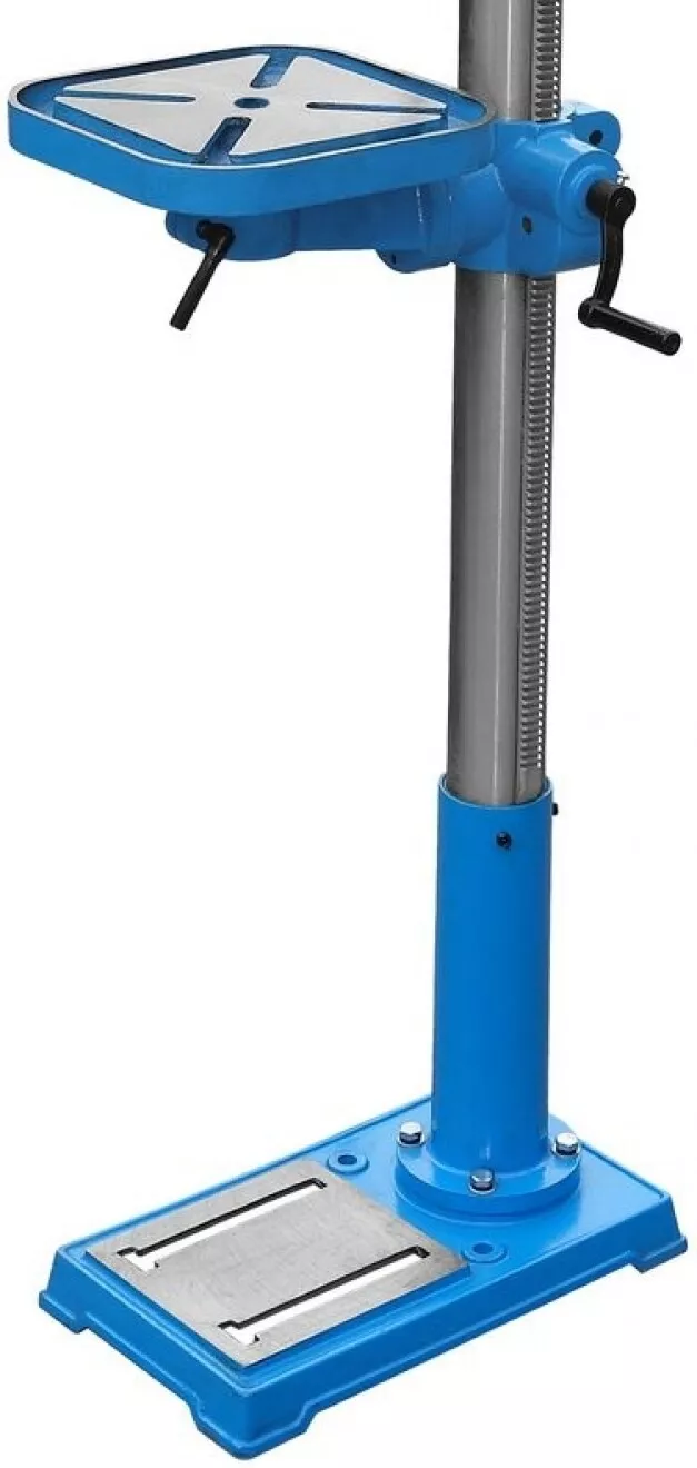 - vzdálenost vřeteno - stůl/základna: 610/1.100 mm), stojná deska z litiny (-> d x š: 240 x 410 mm, včetně vývrtů pro ukotvení vrtačky k podlaze)