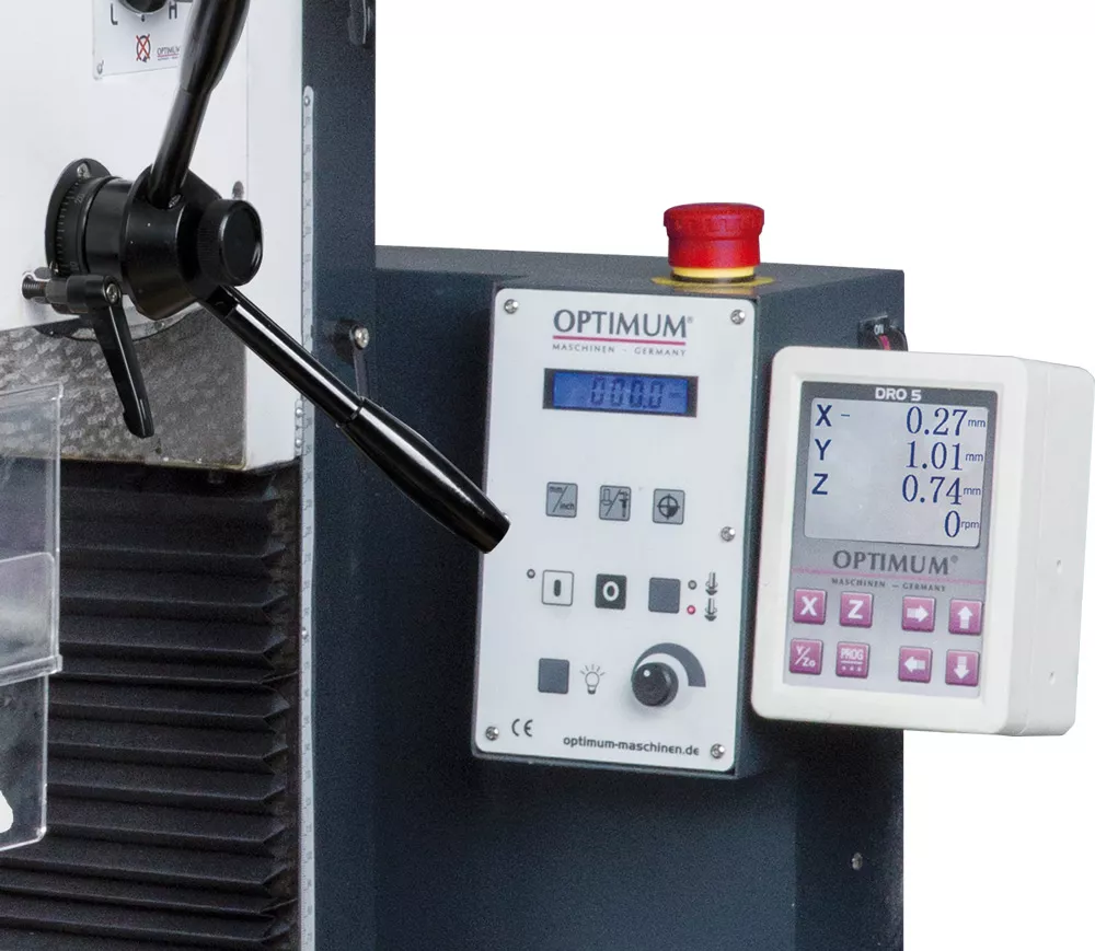 - Je vybavena digitálním odměřováním posuvu pinoly - druhý displej zobrazuje počet otáček vřetene