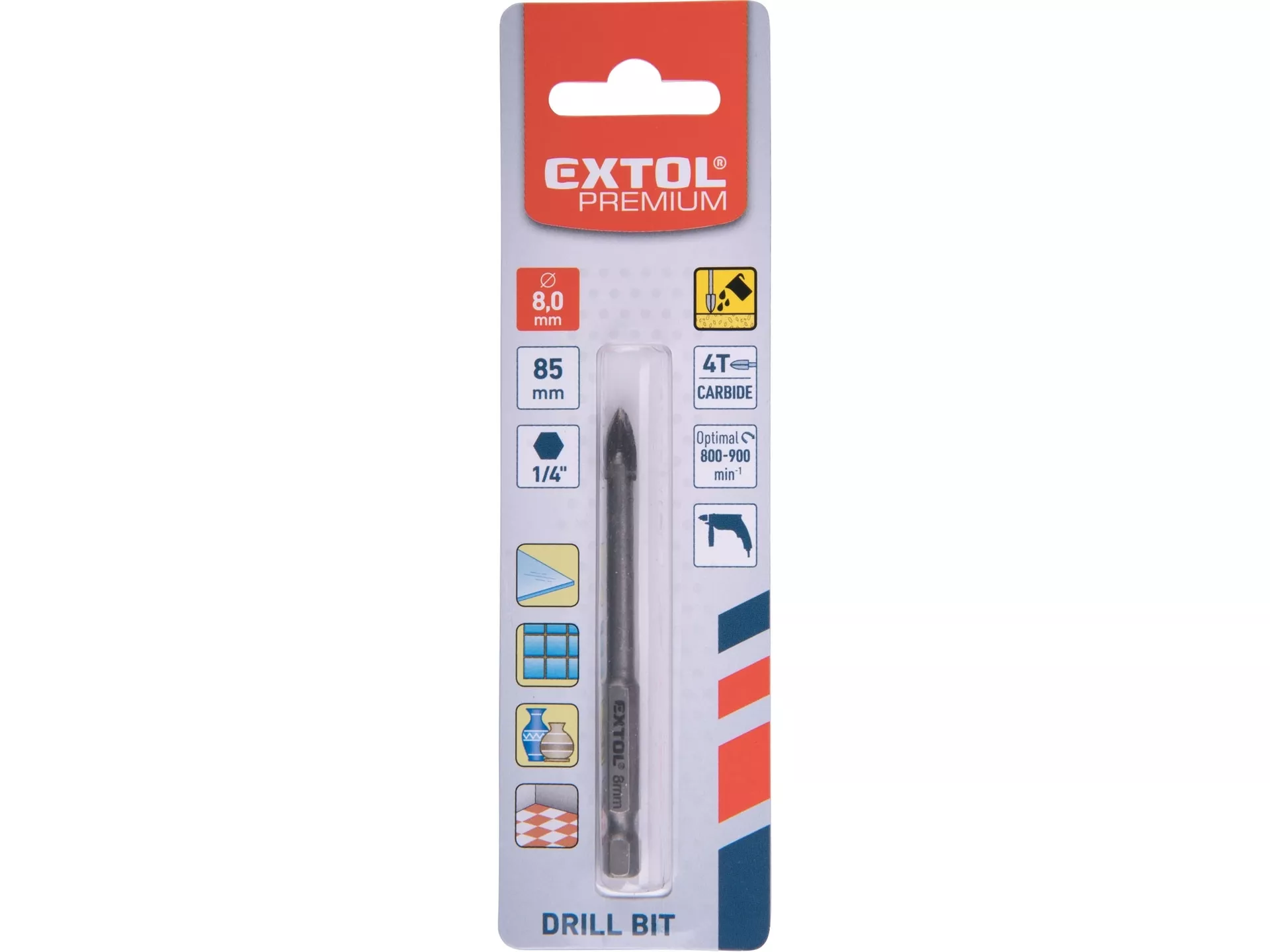 Vrták na sklo a keramiku karbidový, o 8mm EXTOL PREMIUM 8801888