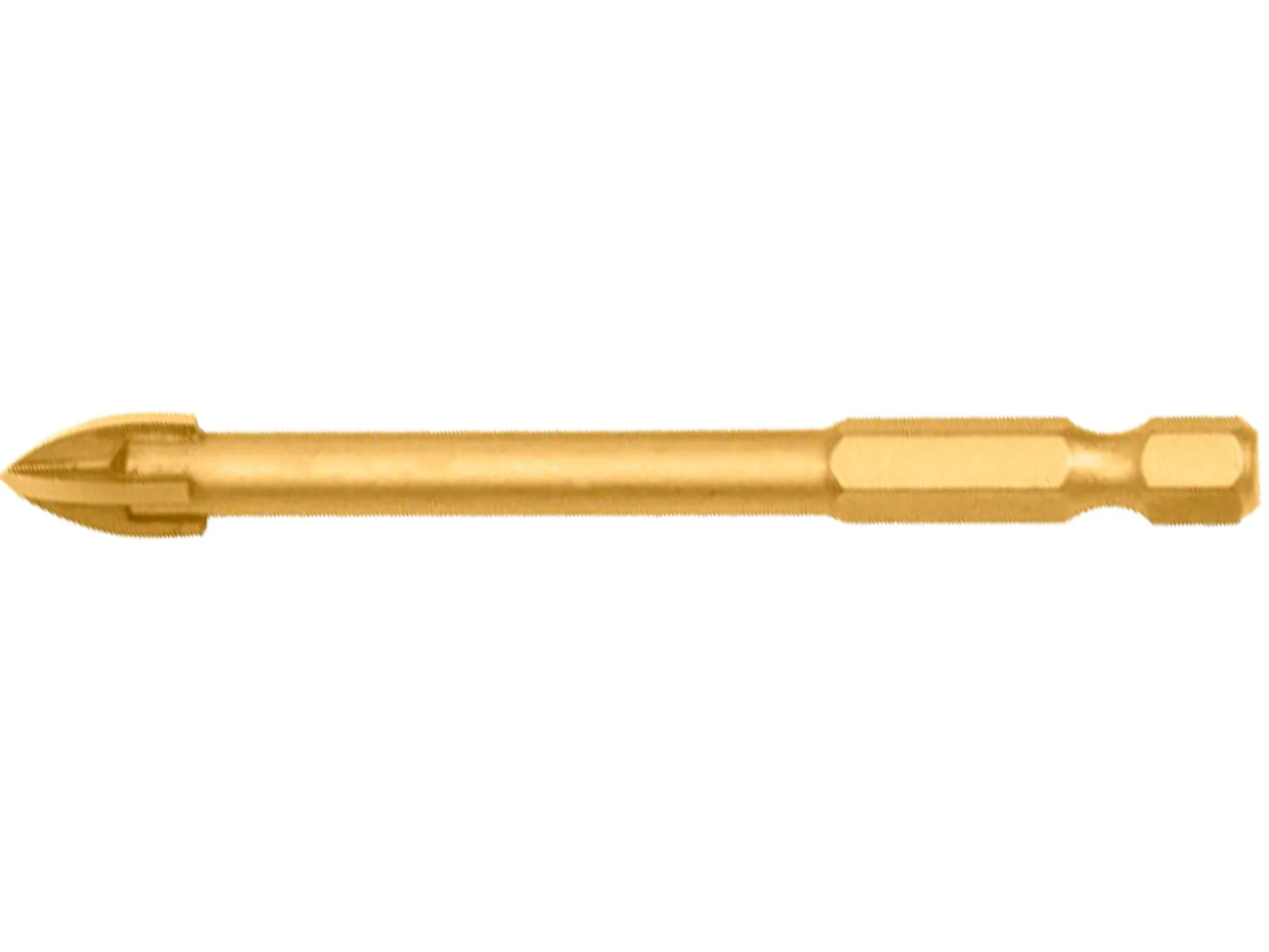 - Vrták s titanovou křížovou nástrojovou hlavou s šestihrannou stopkou. 1/4 HEX.