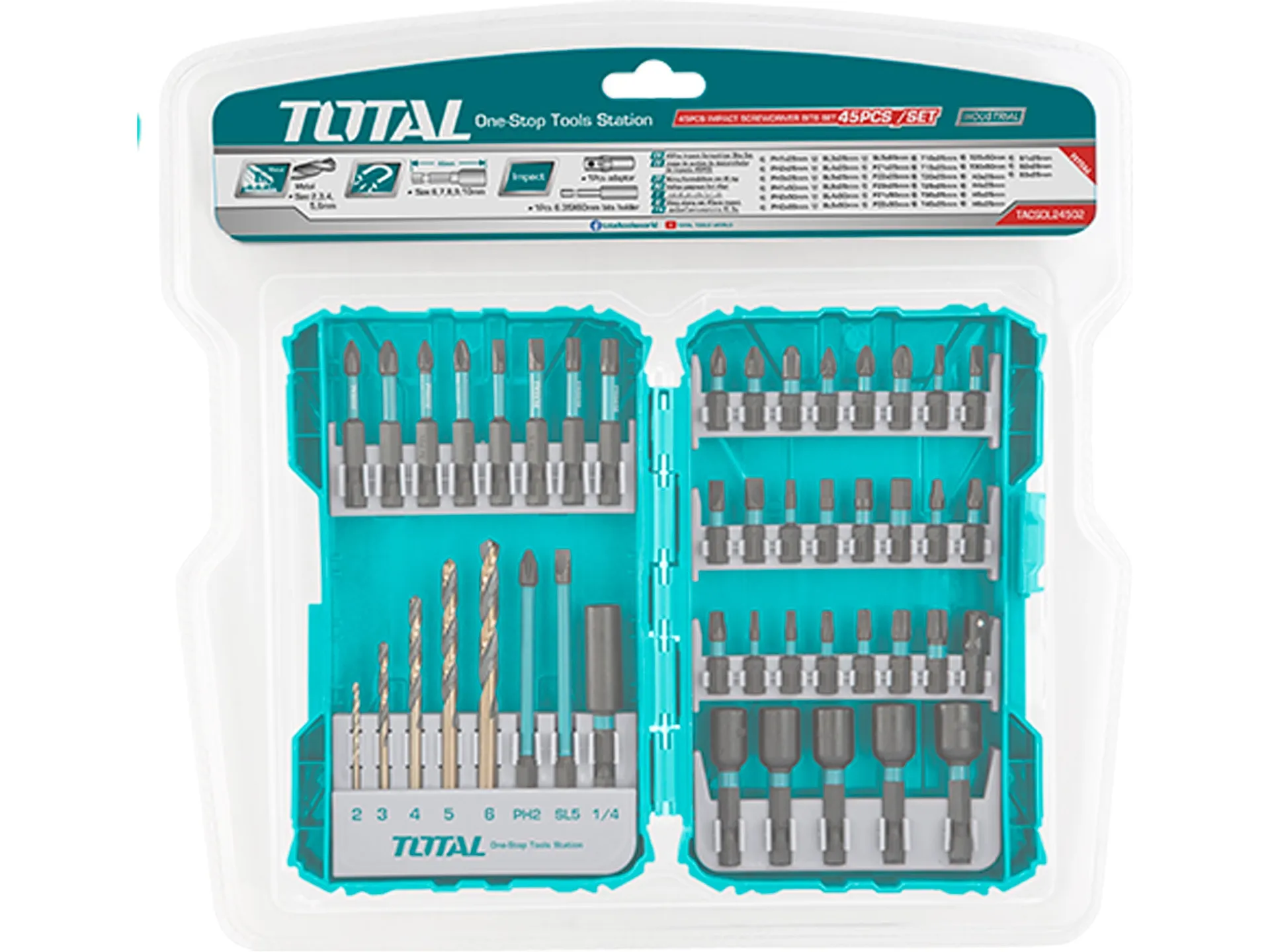 Vrtáky a hroty, sada 45ks, industrial TOTAL TACSDL24502