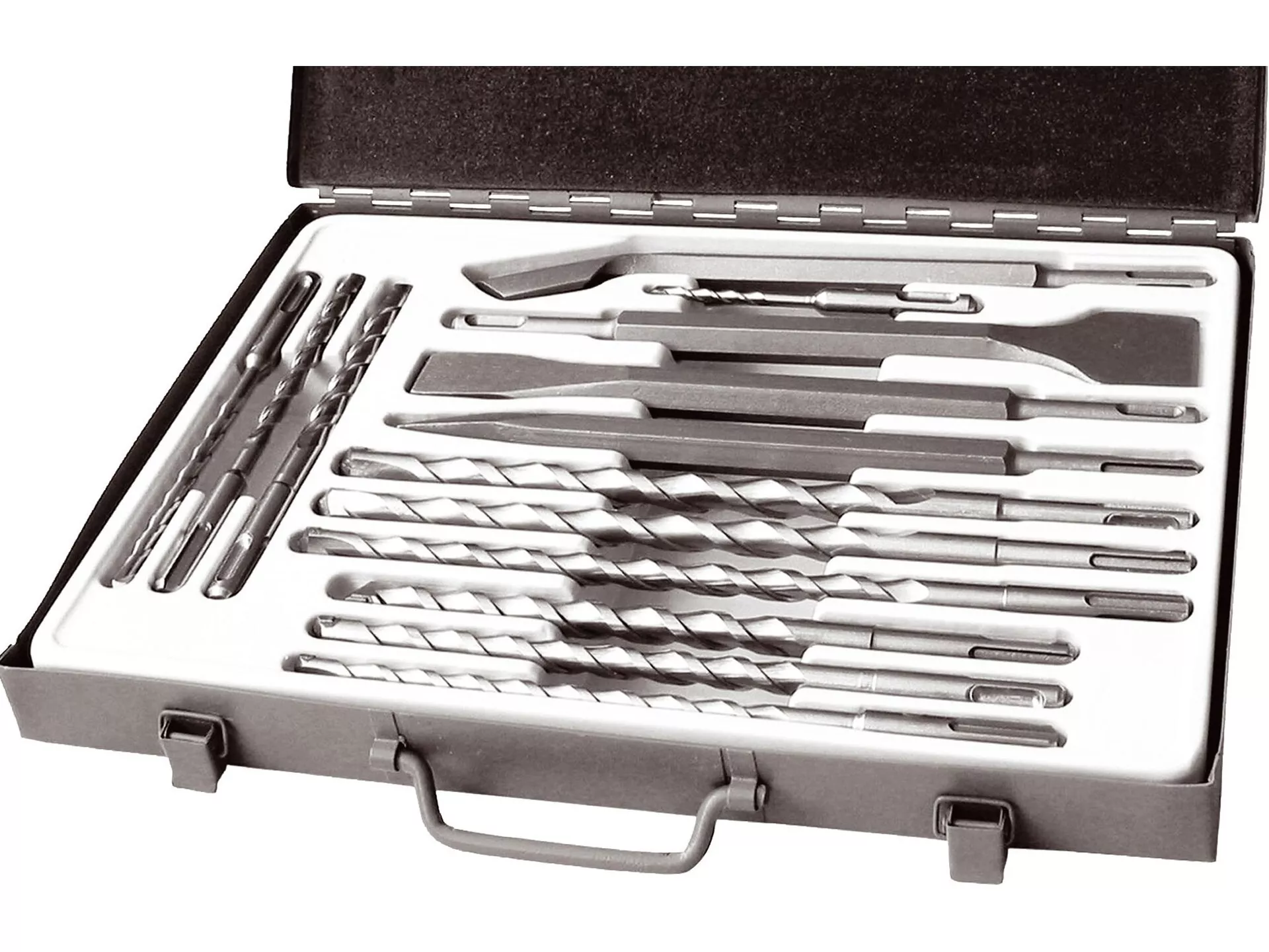 - Doplňující parametr: sekáče 250mm: plochý 20 a 40mm, špičatý, drážkovací vrtáky: O 5x110mm, O 6-8-10x160mm, O 8-10-12x210mm, O 10-12-14x260mm, v kovové kazetě