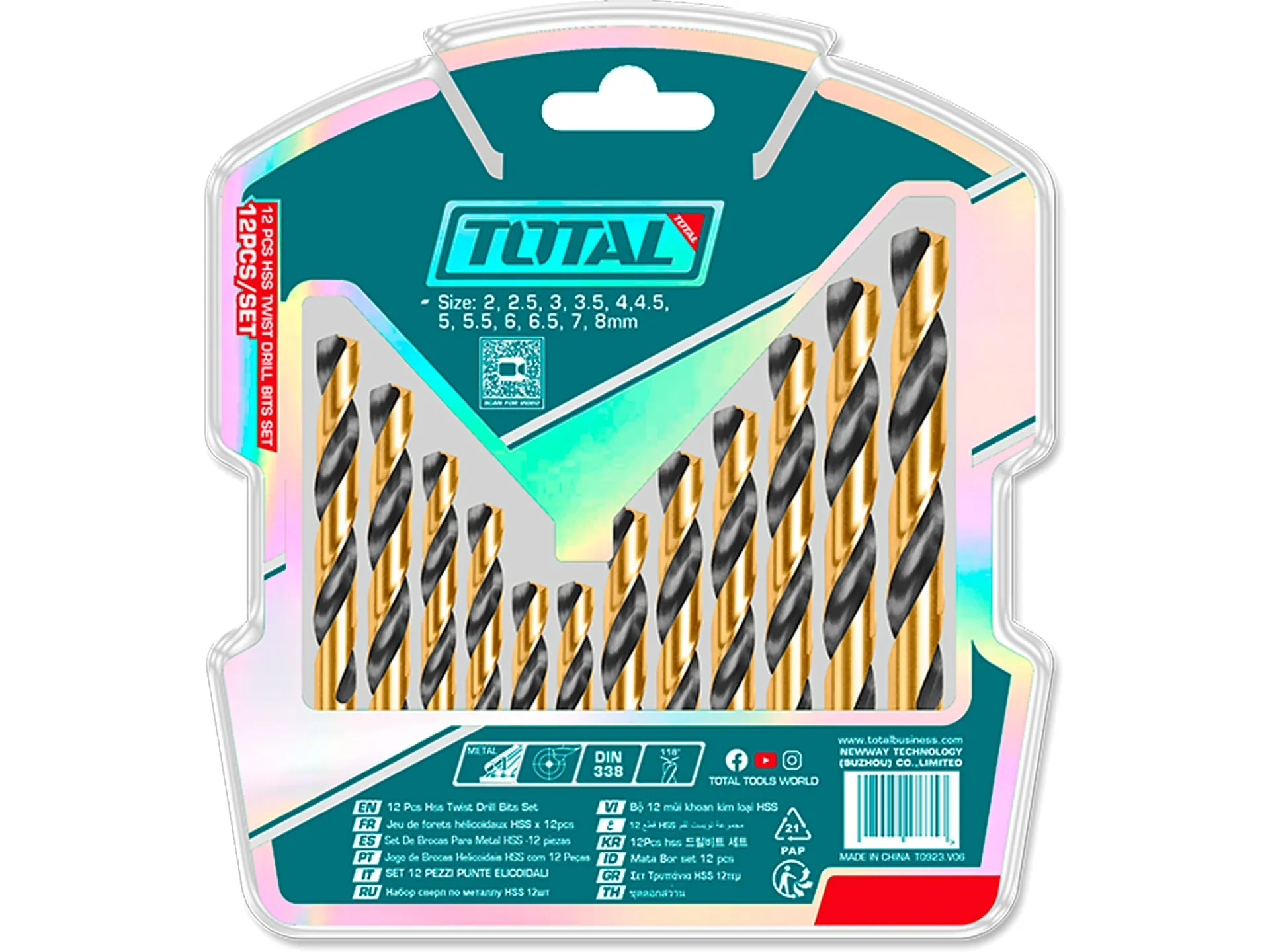 Vrtáky do kovu, sada 12ks, hss TOTAL TACSD0125