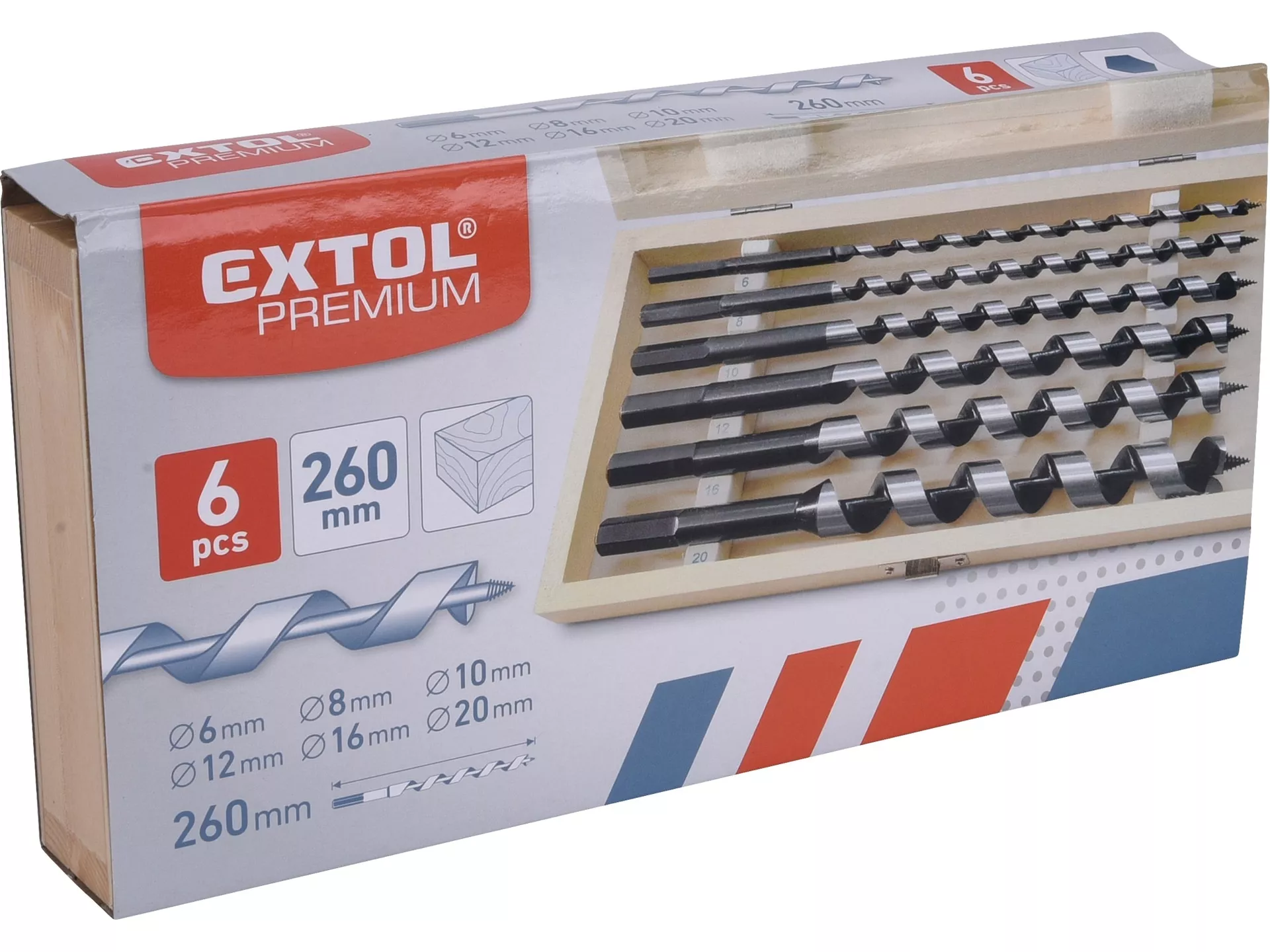 Vrtáky hadovité do dřeva, sada 6ks, o 6-20x260mm EXTOL PREMIUM 8801290