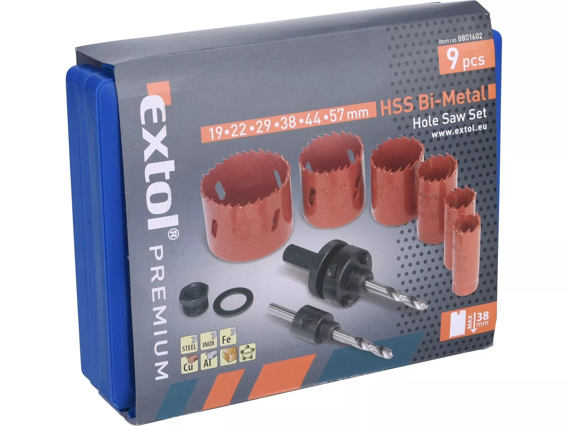 Vrtáky korunkové, instalatérské, 6 průměrů o 19-57mm, hss/bi-metal EXTOL PREMIUM 8801602