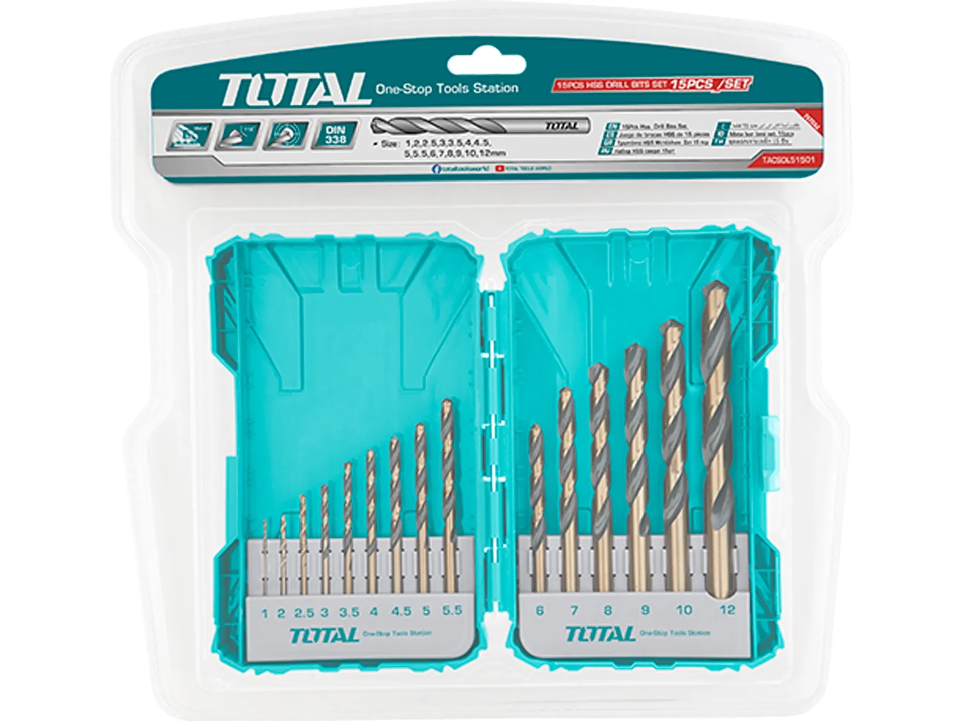 Vrtáky, sada 15ks, hss TOTAL TACSDL51501