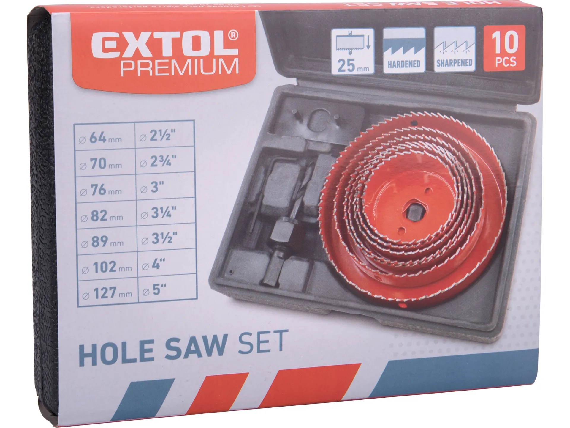 Vrtáky vykružovací korunkové, 7 průměrů o 64-127mm EXTOL PREMIUM 8801607