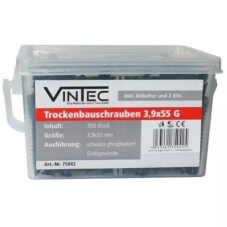 - 215 ks pozinkovaných vrutů 4,5 x 60 mm, hlavička Torx TX 35, 1 x držák bitů, 2 x bit TX 35