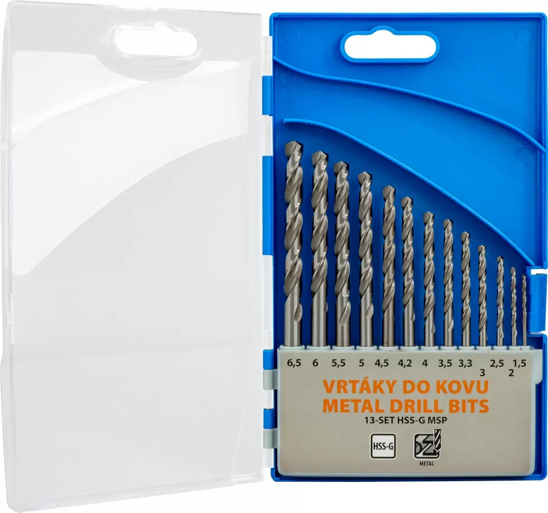 Vybrušované vrtáky pro běžné každodenní vrtání do oceli 13-SET HSS-G MSP NAREX
