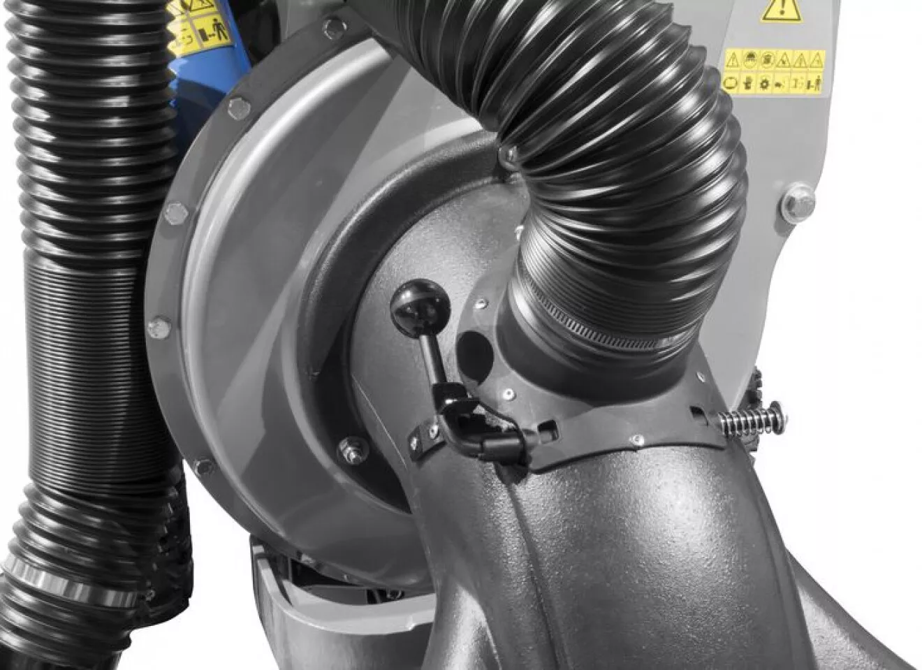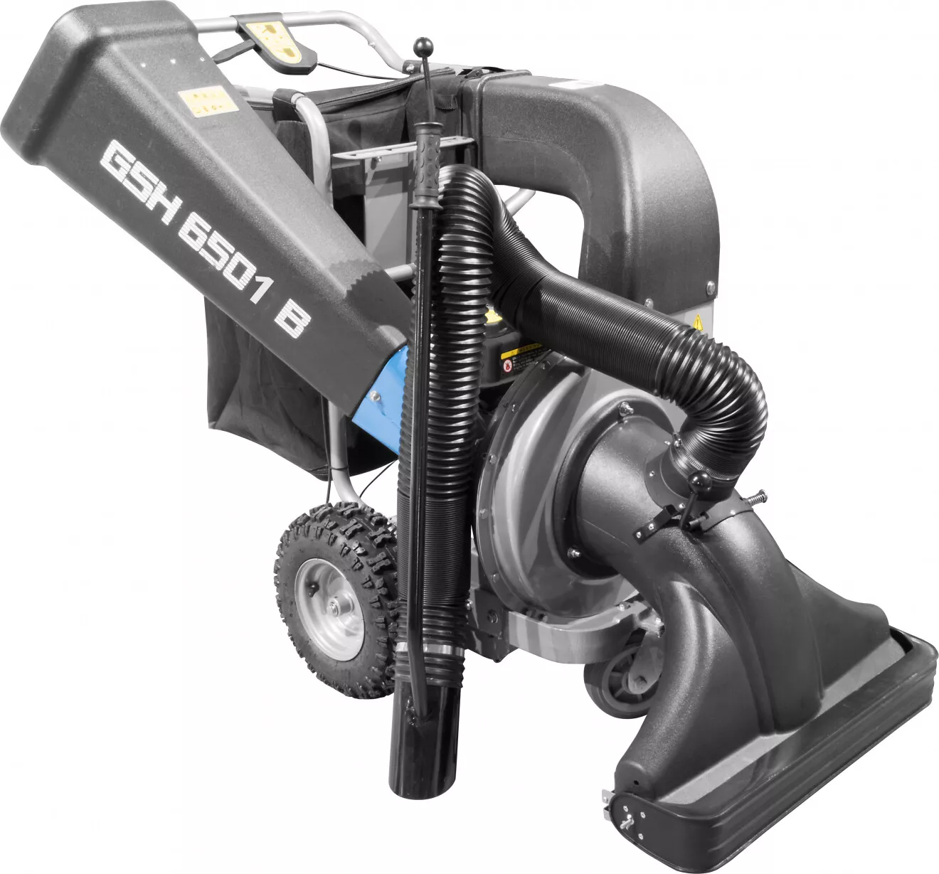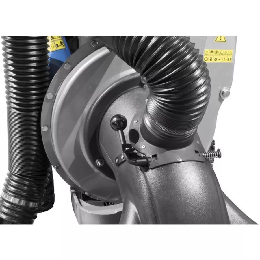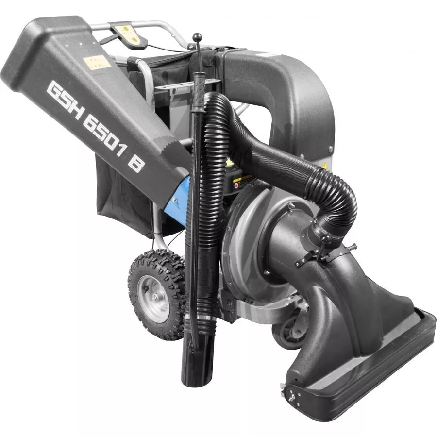 - Konstrukce: robustní ocelová turbína, nožové*** řezací ústrojí, 106 l sběrací vak, vzduchem plněná kola.