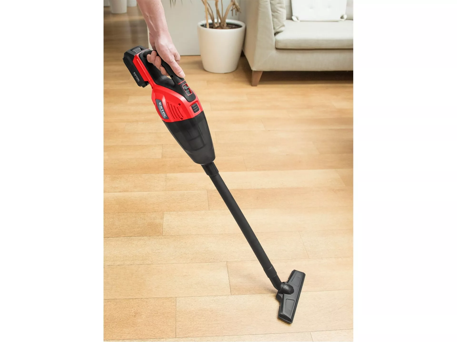- Aku vysavač je určen k suchému vysávání v domácnosti nebo v autě a je ideální pro menší úklidové práce, kvůli kterým se vám nechce rozbalovat elektrický vysavač. Je dodáván s podlahovou koncovkou a prodlužovací sací trubkou pro vysávání podlahy, vysávací koncovkou s kartáčem, úzkou hubici a ohebnou hadicí. Díky bezsáčkovému provedení odpadá potřeba opakovaného dokupování sáčků. Nádoba na prach je jednoduše oddělitelná od těla vysavače stisknutím jediného tlačítka. Nádobu pak stačí pouze vysypat a nasadit zpět. Její objem postačuje pro rutinní úklid. Důležitou součástí vysavače je filtrace. Vysavač má síťový předfiltr a jemný HEPA filtr s vysokou filtrační účinností. Síťový předfiltr chrání jemný HEPA filtr před zanesením hrubým prachem a většími částicemi. Díky své vysoké filtrační účinnosti je tento filtr vhodný zejména pro alergiky. Zanesený HEPA filtr, síťový předfiltr nebo zásobní nádobku na prach lze omýt tekoucí vodou. Přiložená hadice je vynikající, pokud je třeba vysávat ve stísněných prostorech (např. auto), s její pomocí se dostanete úplně všude. Pro běžnou práci dostačují jeden nebo dva 2000mAh akumulátory, které můžete rychle nabít v rychlonabíječce, pro náročnější nebo delší práci doporučujeme větší akumulátory s kapacitou 4000–8000mAh. Akumulátor má indikátor nabití a lze použít ve všech typech nářadí řady EXTOL SHARE20V. Díky použité Li-ion technologii je ho možné kdykoliv dobíjet, aniž by se tím snižovala jeho kapacita. Li-ion akumulátor ztrácí energii vlivem samovybíjení velmi pomalu a vydrží dlouho nabitý a připravený k použití.