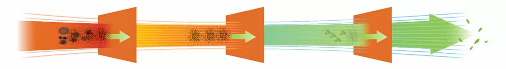- Čistý výstupní vzduch díky trojnásobné filtraci přes filtrační vak, vodní filtr a HEPA filtr