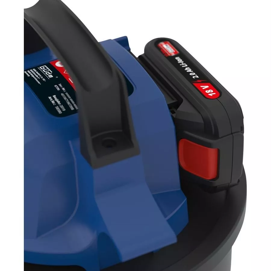 - Akumulátorový vysavač na popel ze série akumulátorového nářadí 18V E3 pro použití kolem domu a na zahradě