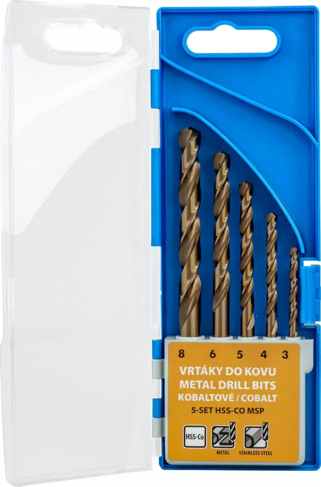 - rychlořezná ocel s 5% příměsí kobaltu dobře vede teplo a díky tomu vrtáky snáze odolávají většímu zatížení