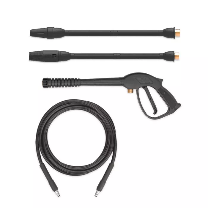 - Praktické držáky pro stříkací pistoli, trubici, vysokotlakou hadici a napájecí kabel