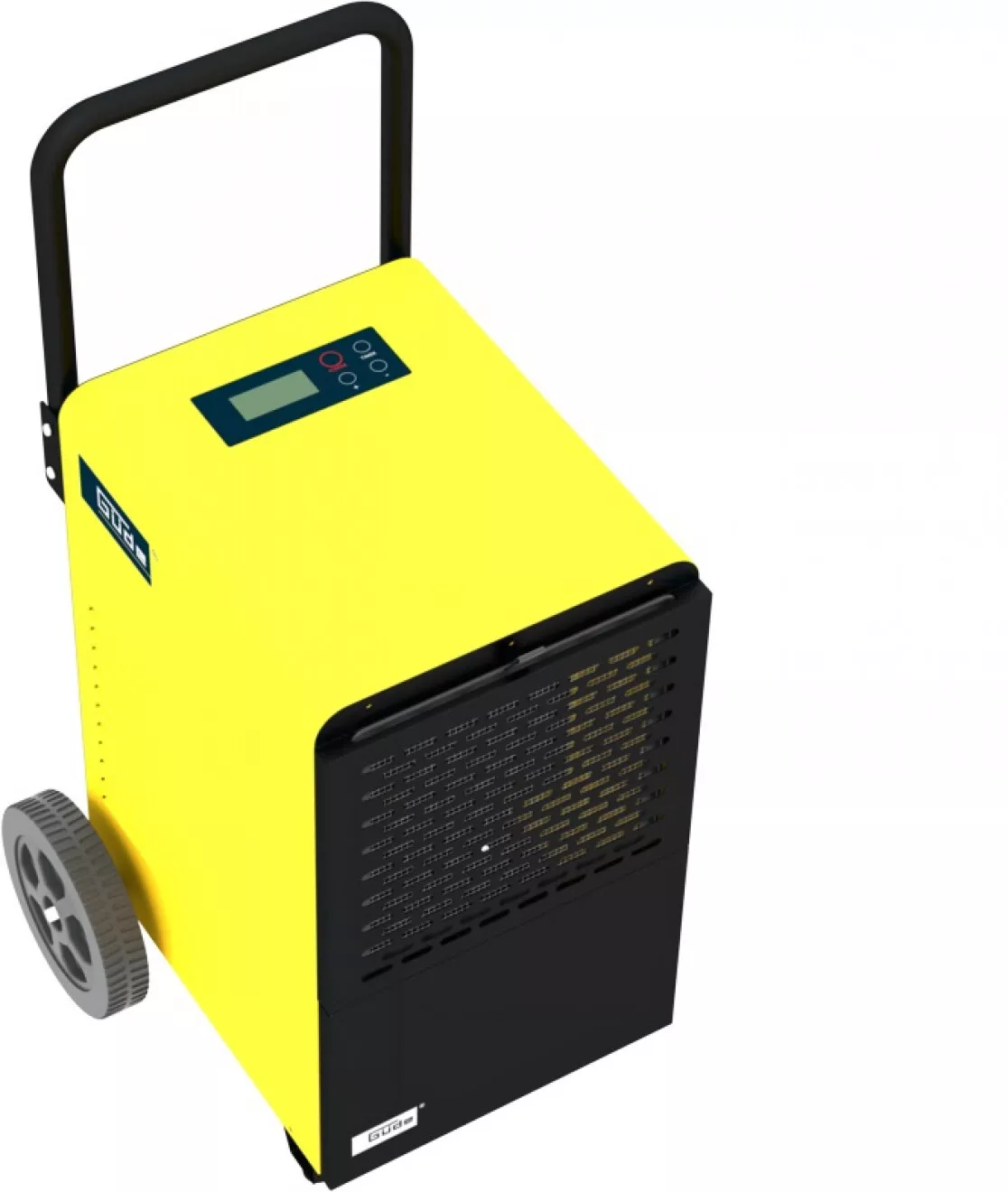 - Kondenzační odvlhčovač vzduchu*, určený k vysoušení obytných prostor i komerčních objektů s podlahovou plochou do 120 m2.Vysušování staveb při rekonstrukčních nebo dokončovacích pracích • odstranění vlhkosti v novostavbách • likvidace následků vodovodních havárií • ochrana budov před vznikem (šířením) plísní ad.Nová konstrukční řada vysoušecích zařízení GBT, využívající přírodní (ekologická) chladiva bez obsahu freonů.Přesné nastavení délky chodu vysoušeče (časovač) a cílové vlhkosti vzduchu (v rozsahu RH 10 - 95%) • funkce AUTO-STOP (automatické vypnutí po naplnění nádrže kondenzátem) • vypouštěcí hadice pro nepřetržitý provoz.Konstrukce: plášť z ocelového plechu, elektronický hygrostat, kompresor chlazení, ventilátor, 7 l nádoba na kondenzát, přepravní držadlo, velká pojezdová kola.Celkové rozměry (d x š x v): 480 x 450 x 655 mm, pracovní teplota: 5 - 35 °C, stupeň krytí: IP 22, hladina akustického výkonu LWA: 56 dB (A).*Zchlazení nasávaného (vlhkého) vzduchu pod rosný bod, svedení zkapalněné vodní páry do zachycovací nádržky, opakovaná cirkulace vysoušeného vzduchu odvlhčovačem pro rychlé snížení relativní vlhkosti RH.
