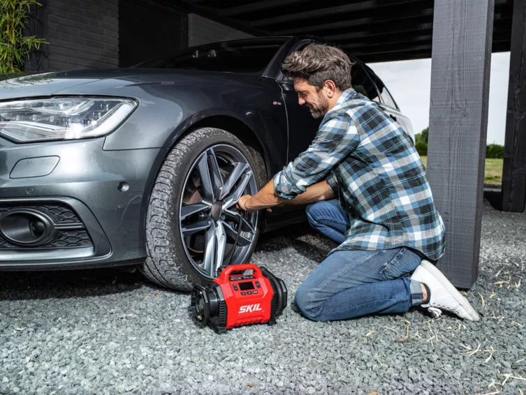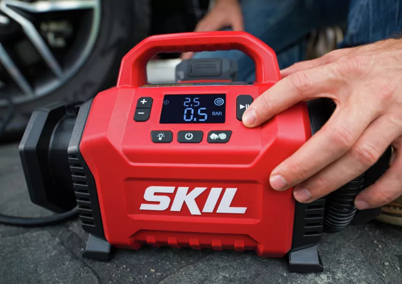 - SKIL 3153 je výkonný akumulátorový vzduchový kompresor ideální na nafukování pneumatik, duší, sportovních míčů, raftů a nafukovacích matrací.