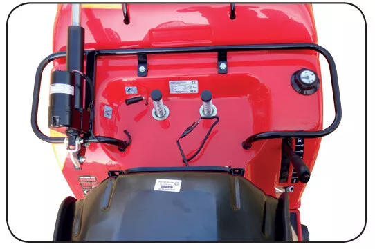 - - Nadstandardní výbava - masivní trubková konstrukce kolem sedadel poskytuje jistotu a bezpečí při sekání svažitých terénů a usnadňuje manipulaci se strojem. Uzávěr nádrže s přehledným palivoměrem.