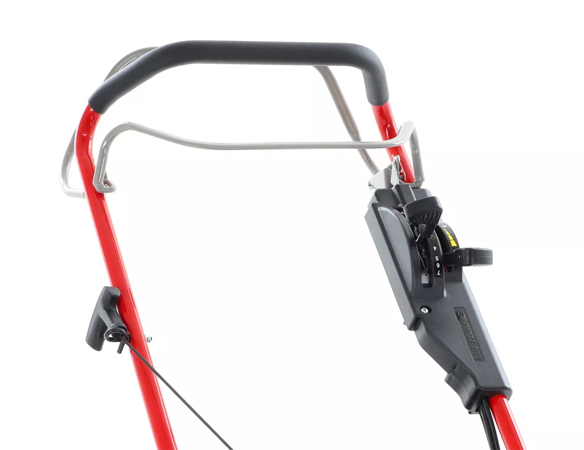 - Tato funkce může eliminovat škody na sekačce způsobené nárazem nože do překážky. Ergonomická rukojeť s ovládacími prvky otáček motoru a speciální povlak na obvodu sběracího koše, který stimuluje proud vzduchu, aby se neprášilo na obsluhu.