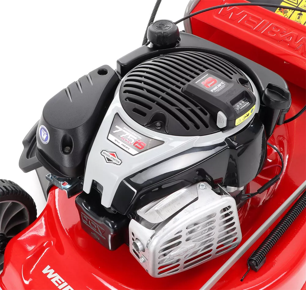 - Dále je tato sekačka vybavena pevnými zadními koly a sklopnou rukojetí pro snadné uskladnění a přepravu. Masivní žačí nůž s mohutnými vyhazovacími "lopatami - tzv. BIG BLADE" a velký koš spolu se zajímavou cenou dělají z této sekačky WEIBANG WB 506 SBVE DOV 7in1 kvalitního pomocníka s bojem proti zelenému živlu. Dalším velkým plusem je osvědčený americký motor B&S, jedná se o silný motor o výkonu 6 HP serie DOV 775IS s elektro startem a vysokým kroutícím momentem 9,5 Nm - 161 ccm.