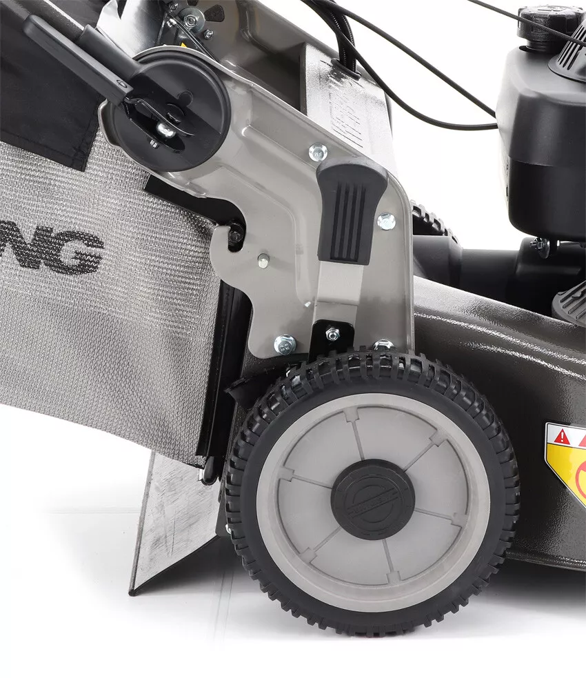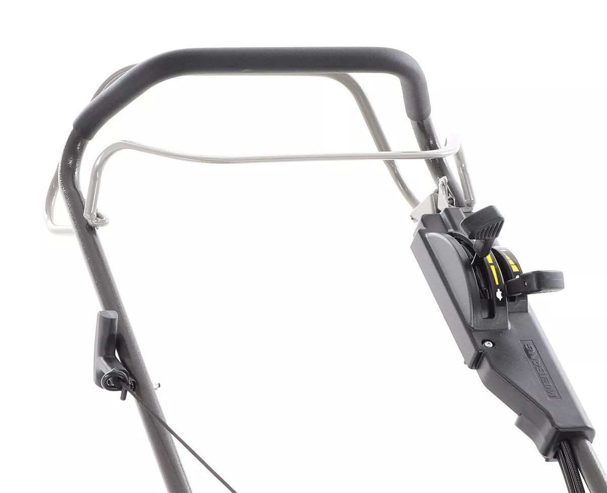 - Zadní výhoz: ANO v profesionální nástavbě Ovládací panel na rukojeti: ANO Ergonomicky měkčená rukojeť: ANO Kovové rychloupínáky madla: ANO