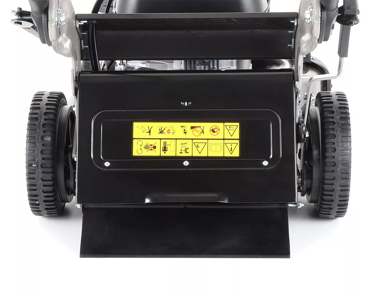 - Dále je tato sekačka vybavena pevnými zadními koly a sklopnou rukojetí pro snadné uskladnění a přepravu. Masivní žačí nůž s mohutnými vyhazovacími "lopatami - tzv. BIG BLADE" a velký koš spolu se zajímavou cenou dělají z této sekačky WEIBANG WB 507 SCV
