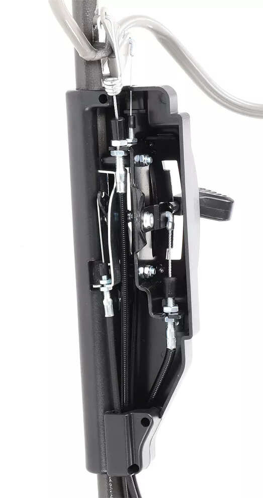 - Zadní výhoz: ANO v profesionální nástavbě Ovládací panel na rukojeti: ANO Ergonomicky měkčená rukojeť: ANO Kovové rychloupínáky madla: ANO