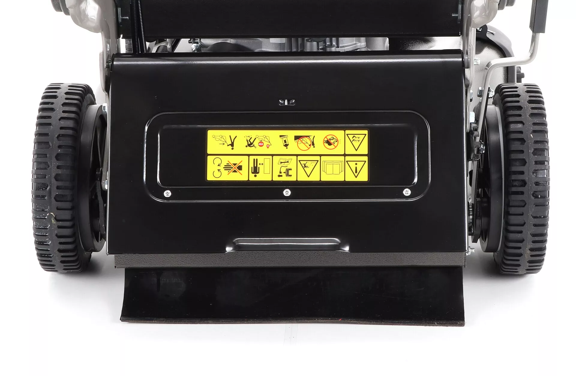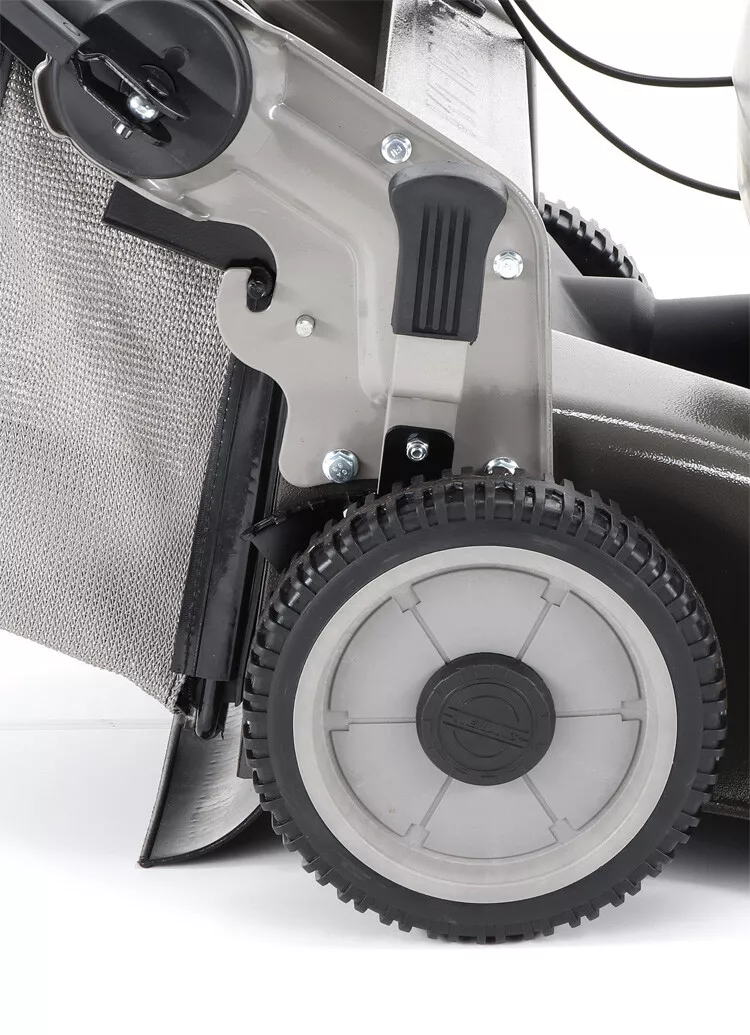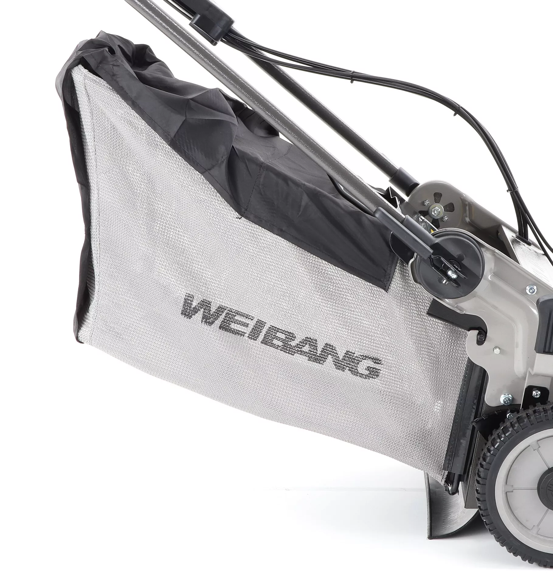 - Dále je tato sekačka vybavena pevnými zadními koly a sklopnou rukojetí pro snadné uskladnění a přepravu. Masivní žačí nůž s mohutnými vyhazovacími "lopatami - tzv. BIG BLADE" a velký koš spolu se zajímavou cenou dělají z této sekačky WEIBANG WB 537 SCV