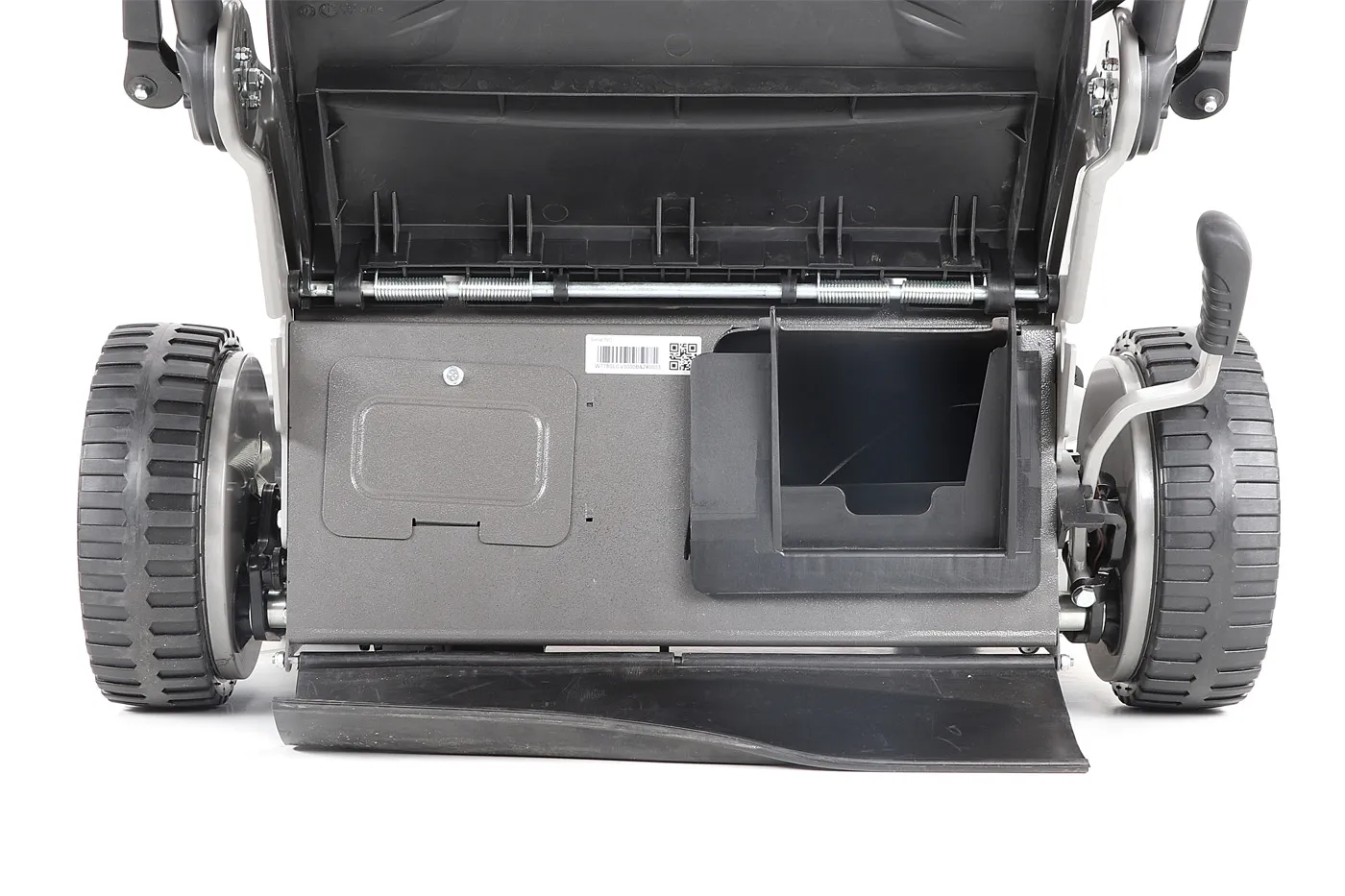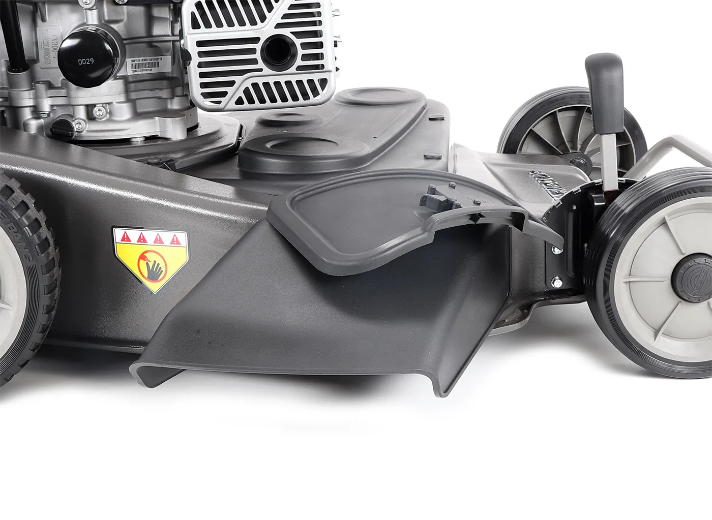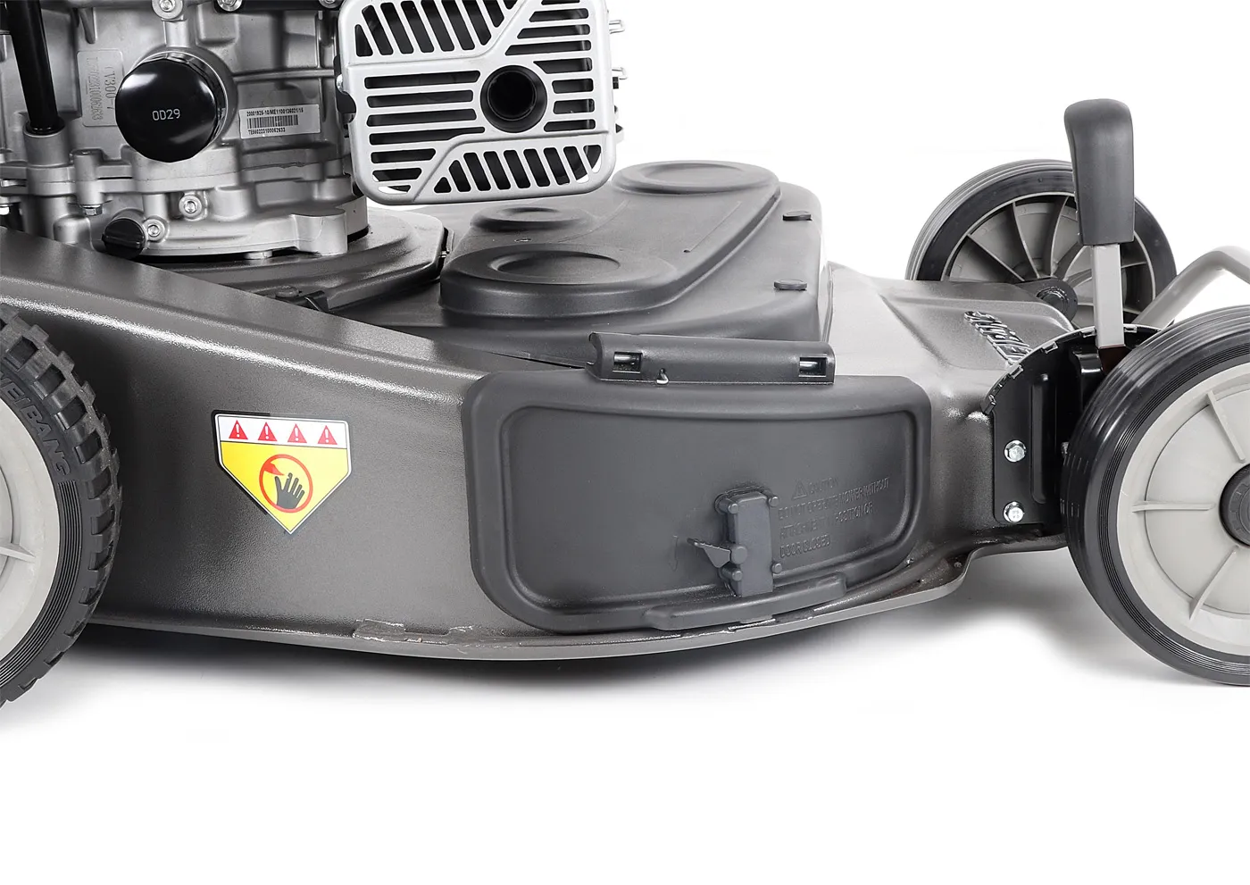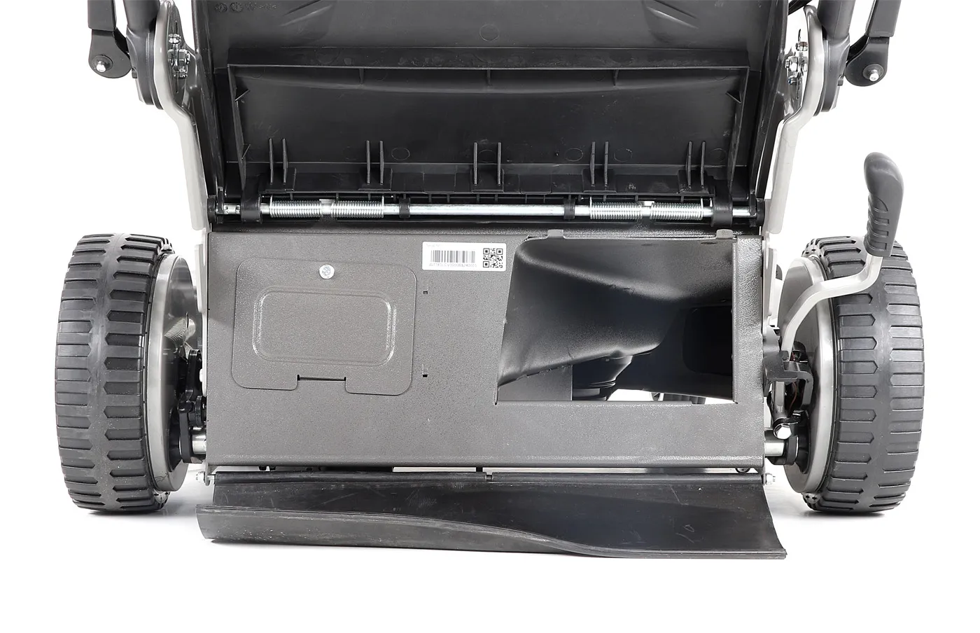 - -Tělo sekačky je vyrobeno z kvalitní oceli, která zajišťuje vysokou odolnost vůči mechanickému poškození, korozi i dlouhodobému opotřebení. Masivní přední nárazník chrání stroj před poškozením při nárazech do obrubníků, stromů nebo jiných překážek.