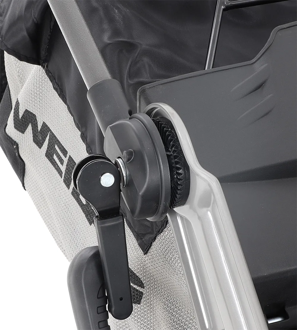 - -Kovové rychloupínáky na rukojeti usnadňují sklopení a transport, například při převozu v dodávce nebo skladování.