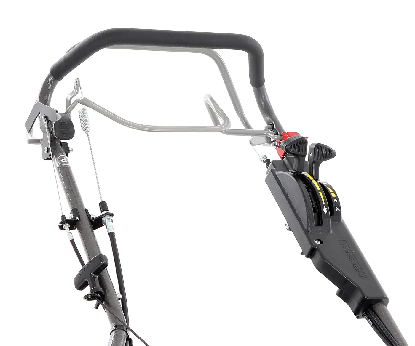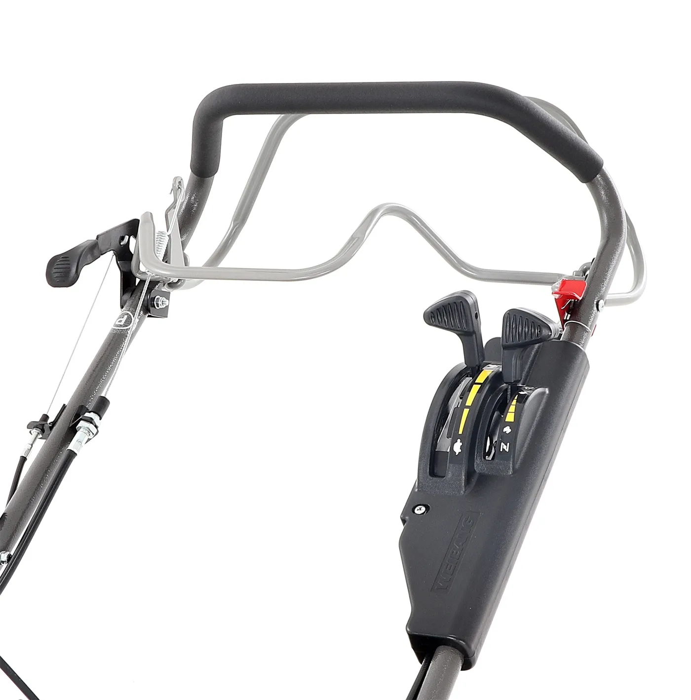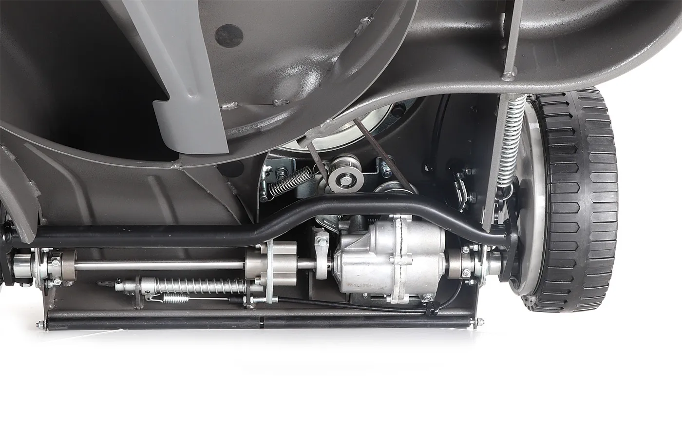 - Zásadní výhodou této sekačky je variátorová převodovka s kovovým tělem, která umožňuje plynulé nastavení rychlosti pojezdu v rozsahu 2,99 až 4,5 km/h uživatel si tak může rychlost snadno přizpůsobit aktuálním podmínkám a svému pracovnímu tempu. Tento systém je velmi odolný a navržený pro dlouhodobé profesionální nasazení.