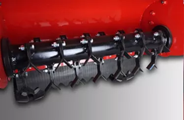 - Cepový válec s noži je přitom zcela ukryt pod pevným ocelovým krytem, obsluha i okolí jsou dobře chráněny. Nože jsou na válci zavěšeny volně na čepech, při nárazu na kámen nebo jiný předmět se proto mohou sklopit. Tráva je přitom několikrát rozmělněna a za sekačkou tak zůstává mulč, který rychle seschne a zetleje.